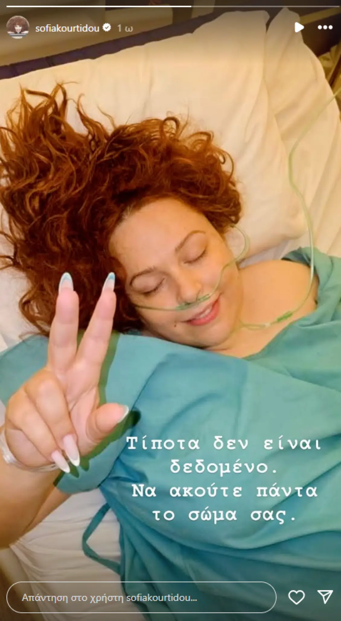 Σε Instagram story που έκανε από το δωμάτιο του νοσοκομείου έγραψε: «Τίποτα δεν είναι δεδομένο. Να ακούτε πάντα το σώμα σας».