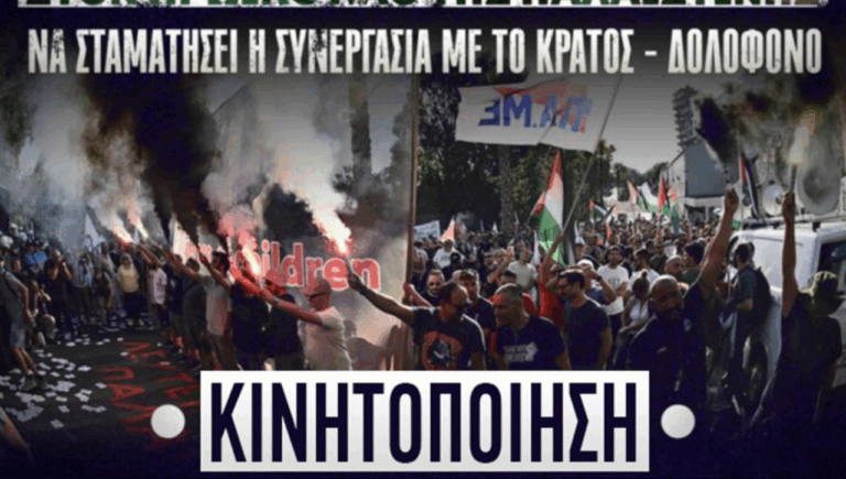 Σε συγκέντρωση στο Αγρίνιο καλεί το Εργατικό Κέντρο για τον ηρωικό λαό της Παλαιστίνης, στην πλατεία Δημάδη.