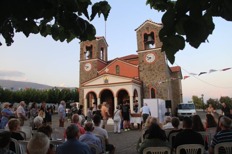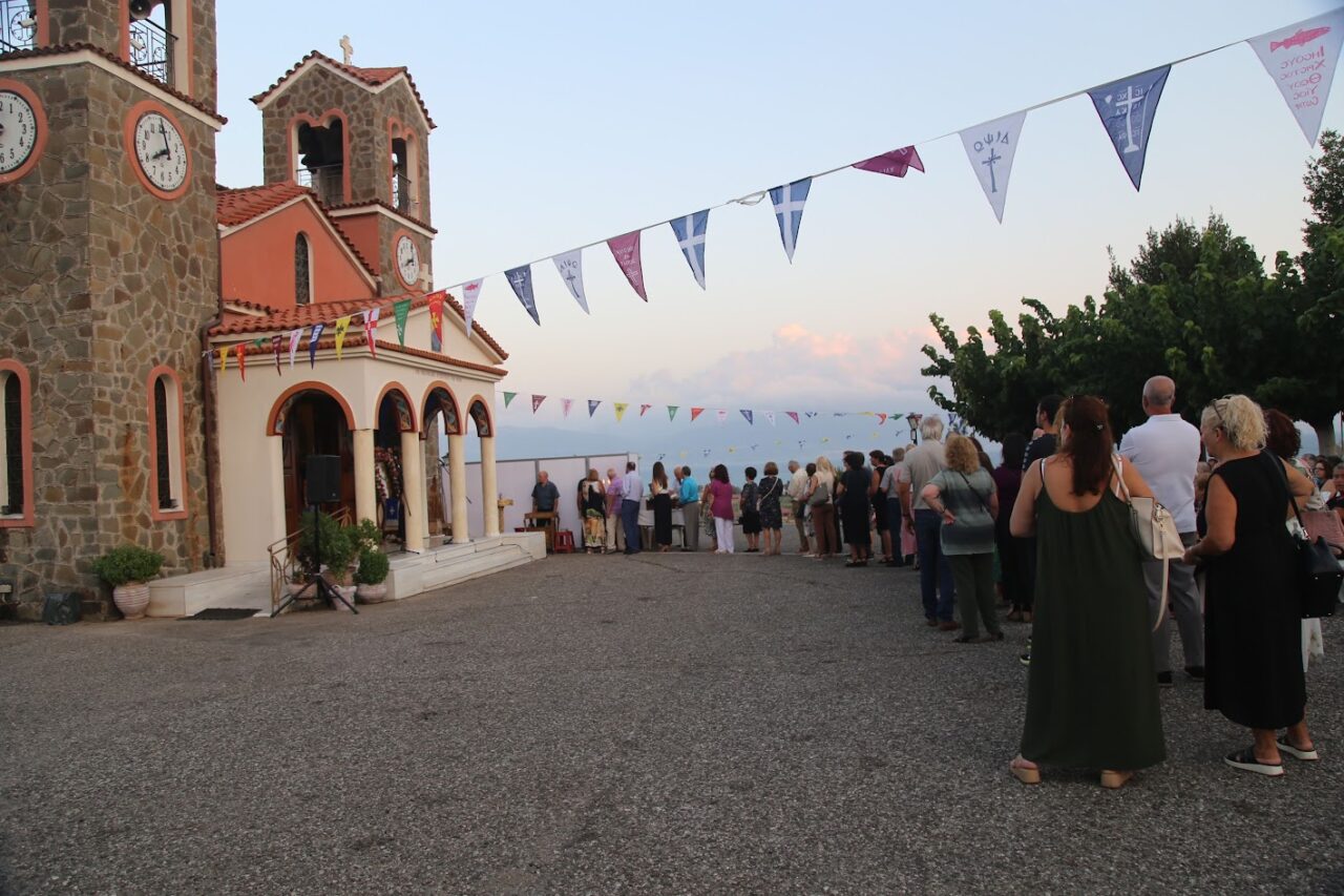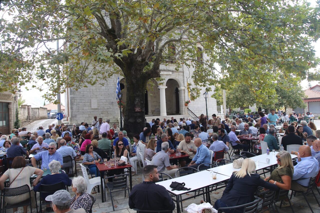 Μετά το πέρας της θείας Λειτουργίας ο Σεβασμιώτατος είχε επικοινωνία με όλους τους κατοίκους στην γραφική πλατεία του χωριού, όπου προσφέρθηκε πλούσιο κέρασμα, έξω από τον Ιερό Ναό και κάτω από τον κεντρικό πλάτανο του Πλατάνου.