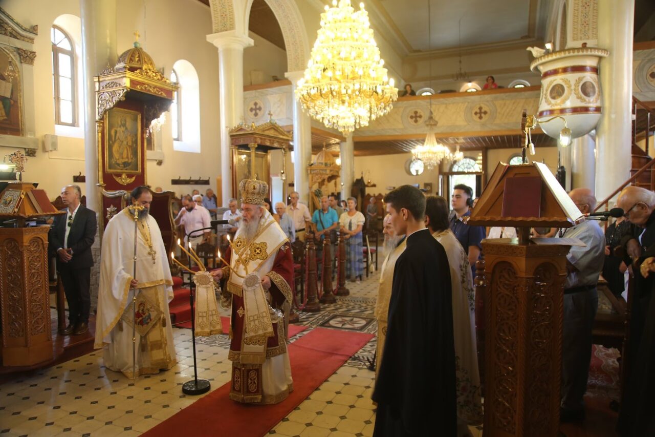 Ο Σεβασμιώτατος στην αρχή του κηρύγματός του είπε ότι όλον τον μήνα Αύγουστο τιμούμε την Υπεραγία Θεοτόκο και ομιλούμε γι’ αυτήν, αλλά δεν χορταίνουμε να αναφερόμαστε στο πανάγιο πρόσωπό της.