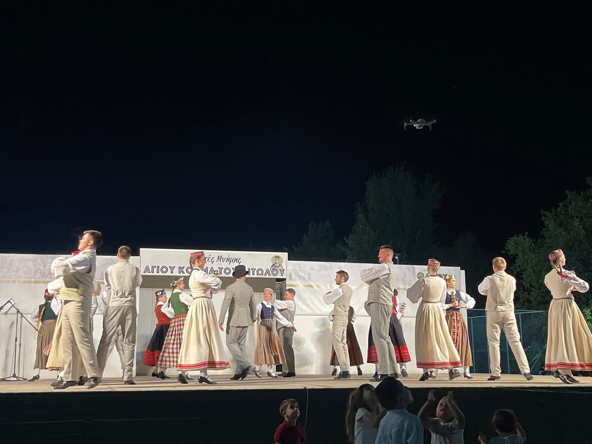 Η Λετονία με τα συγκροτήματα Jandāls και Mārupe, ταξίδεψαν το κοινό στη βαλτική παράδοση, με κυκλικούς χορούς, παραδοσιακές μελωδίες και εντυπωσιακές στολές που συνδυάζουν γεωμετρικά μοτίβα και φυσικά χρώματα.