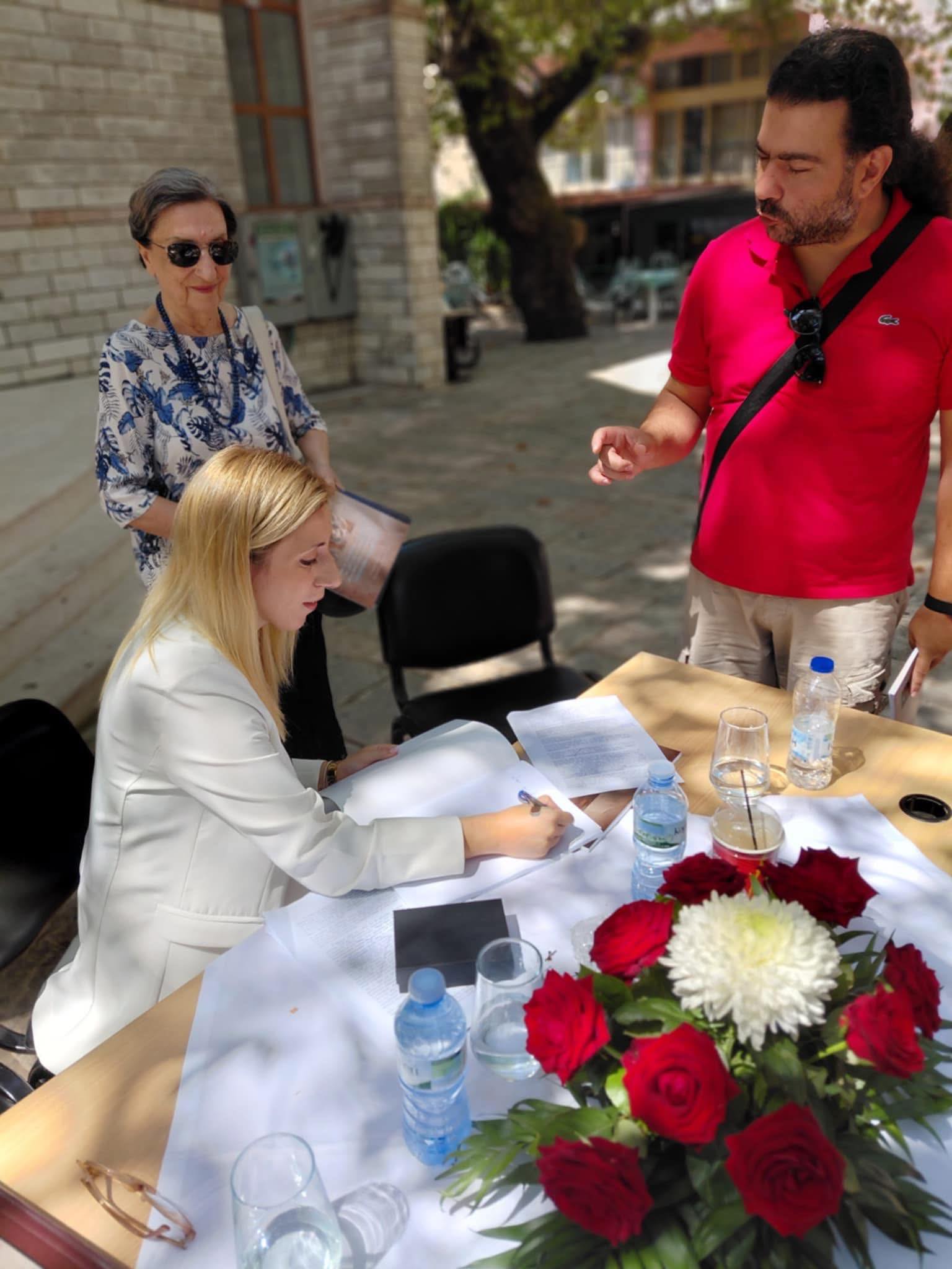 Το πρωί στις 11:00, στην Πλατεία Νικολίτσα, παρουσιάστηκε το νέο βιβλίο της καθηγήτριας και μεταδιδάκτορος κ. Παναγιώτας Μπουμπούλη με τίτλο: «Το άλμα στο παράλογο στη φιλοσοφία του Σαίρεν Κίρκεγκωρ και η επίδρασή του στο έργο του Λαρς Φον Τρίερ Δαμάζοντας τα Κύματα».
