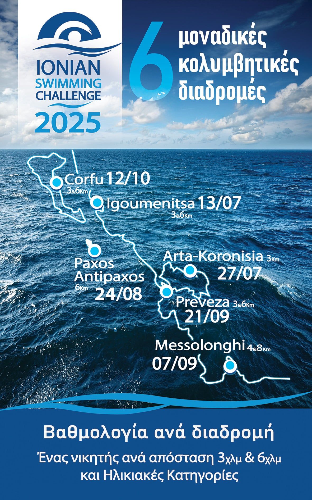 Το μεγαλύτερο κολυμβητικό γεγονός για την πόλη του Μεσολογγίου και της ευρύτερης περιοχής, που παράλληλα αποτελεί και σκέλος ενός μεγαλύτερου κολυμβητικού γεγονότος, τουλάχιστον για την Δυτική Ελλάδα, του ΙONIAN SWIMMING CHALLENGE, διοργανώνει την Κυριακή 7 Σεπτεμβρίου, ο Ναυτικός Όμιλος Μεσολογγίου.