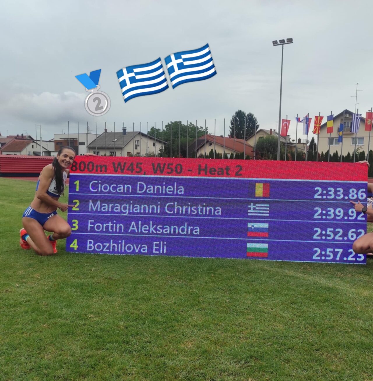 Μεταξύ της ελληνικής αποστολής αγωνίστηκε και η Μαραγιάννη Χριστίνα στα 800μ ( 2.39.92″)και 1500μ (5.31.90″) κατηγορία w50-54 όπου κατέλαβε την 2η θέση και στα δύο αγωνίσματα με την καλύτερη ελληνική επίδοση όλων των κατηγοριών στα αγωνίσματα αυτά!