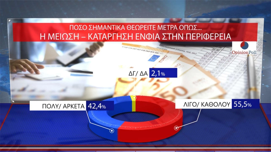 -Το 66,4% σημαντικό το μέτρο για μείωση στο μισό του ΕΝΦΙΑ στα χωριά μέχρι 1.500 κατοίκους το 2026 και μηδενισμό το 2027 (21,6% πολύ, 20,8 αρκετά και 24% λίγο),
