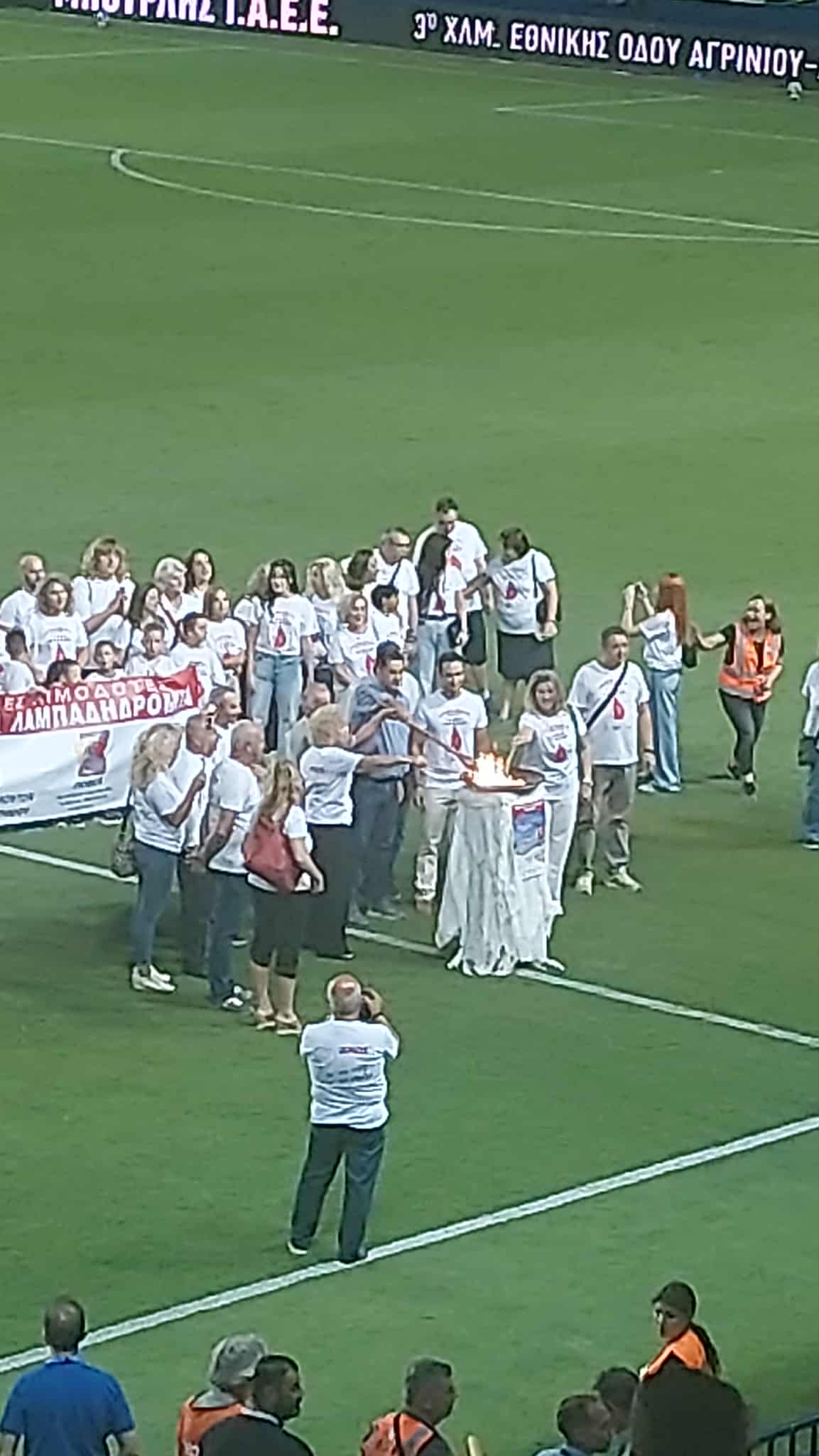 Ο βωμός της «φλόγας της αγάπης» άναψε στο γήπεδο του Παναιτωλικού, μετά το τέλος του πρώτου ημιχρόνου του αγώνα, ενώ νωρίτερα, έξω από το γήπεδο, ο σύλλογος εθελοντών αιμοδοτών Αγρινίου πραγματοποίησε σειρά δράσεων ενημέρωσης και ευαισθητοποίησης για την εθελοντική αιμοδοσία.