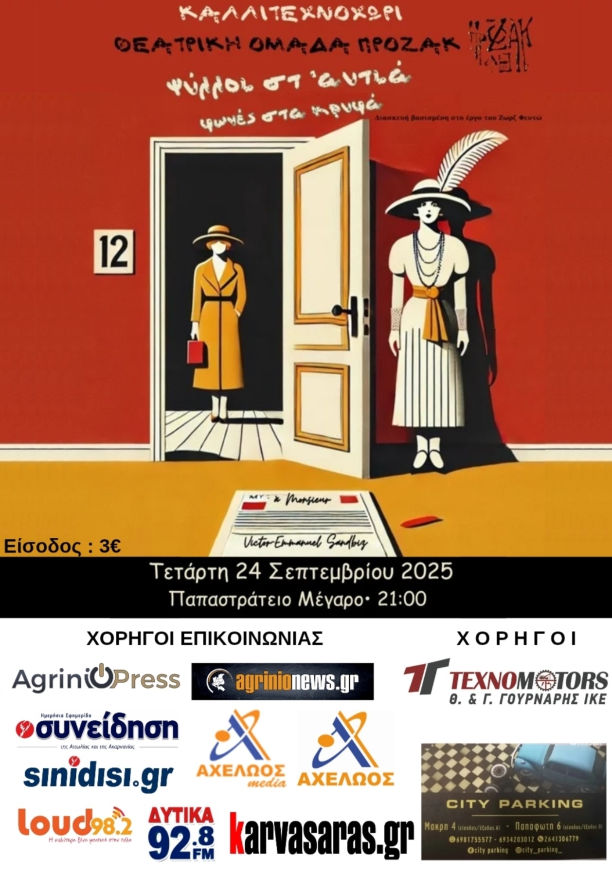 Πηγή: Αγρίνιο – Θεατρική ομάδα «Προζάκ»: Ανεβάζει την παράσταση «Ψύλλοι στ’ αυτιά, φωνές στα κρυφά»