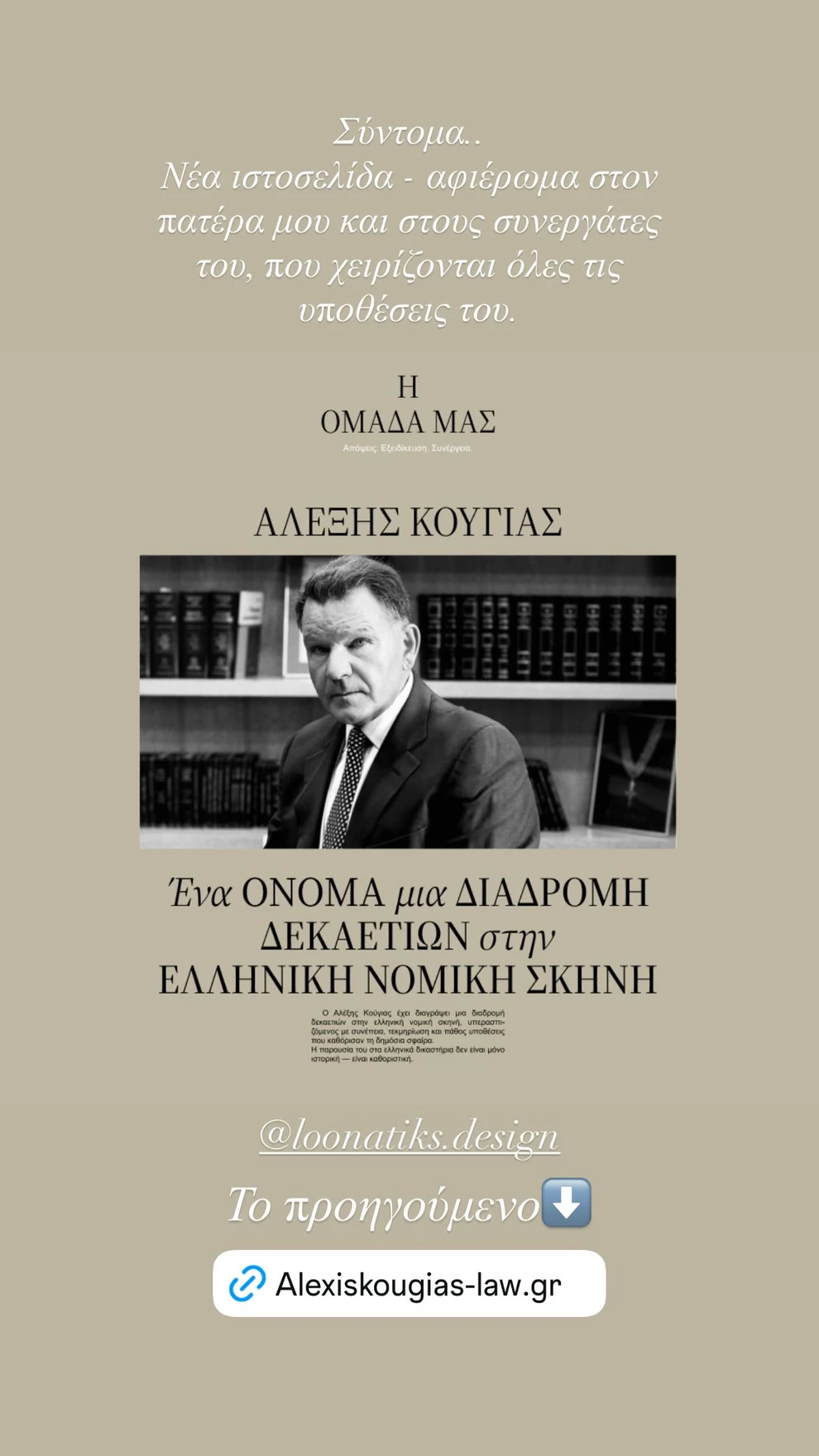 «Σύντομα… Νέα ιστοσελίδα – αφιέρωμα στον πατέρα μου και στους συνεργάτες του, που χειρίζονται όλες τις υποθέσεις του», ανέφερε χαρακτηριστικά ο ίδιος στην ανάρτησή του.