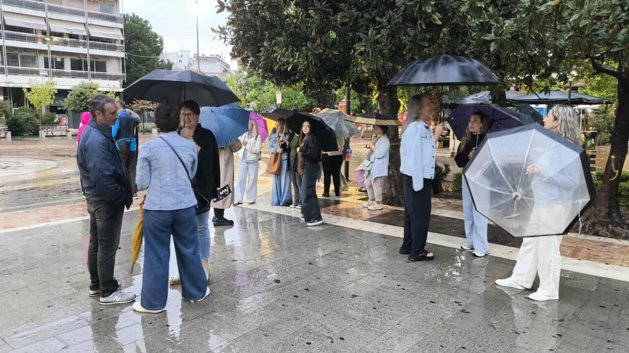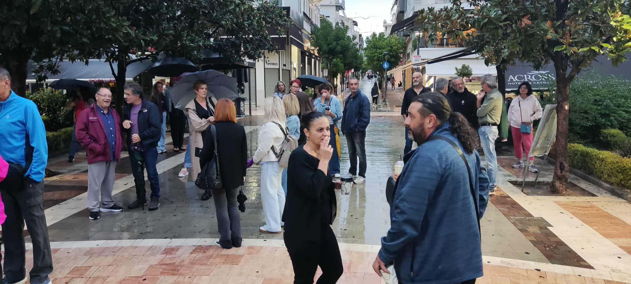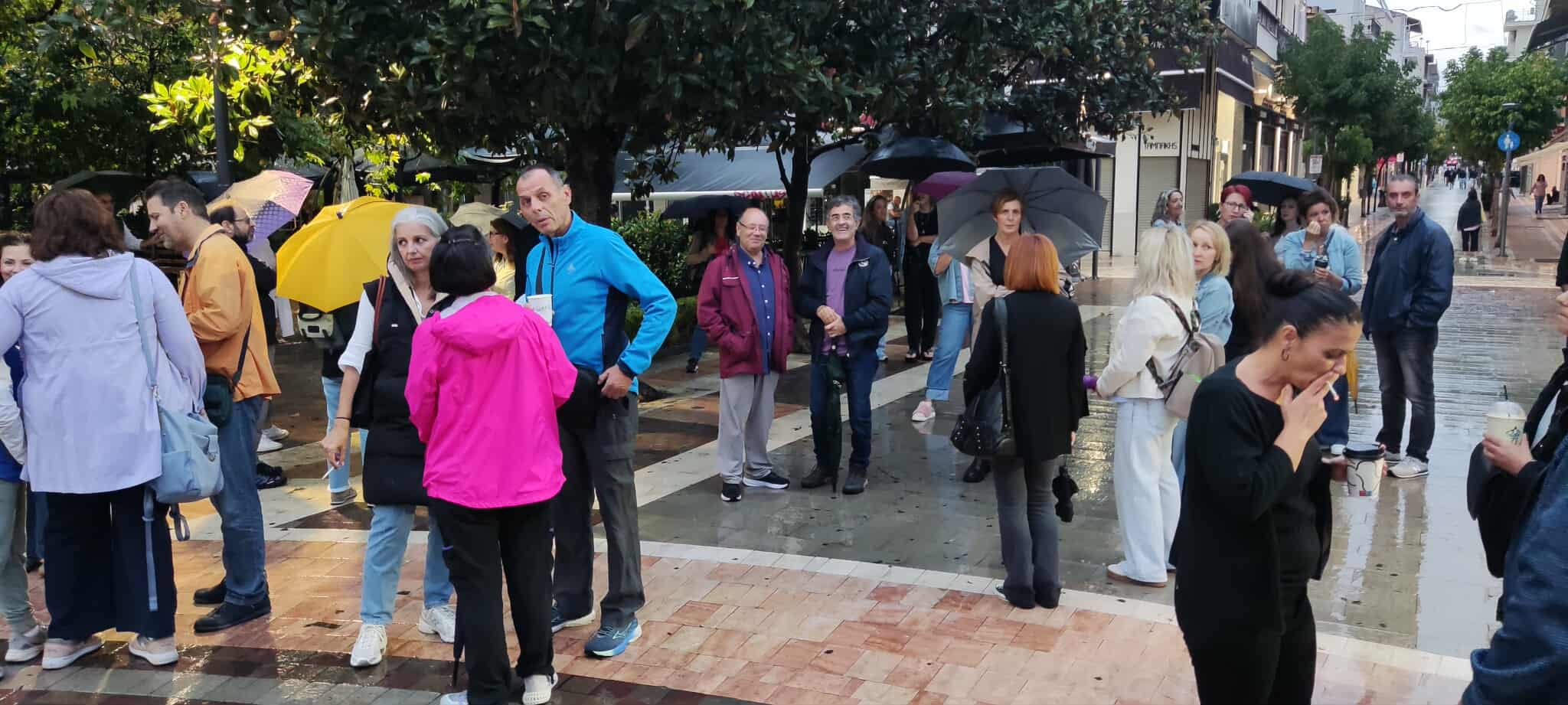 Στην κινητοποίηση συμμετείχαν πολίτες της περιοχής, εκφράζοντας την αλληλεγγύη τους στις οικογένειες των απεργών πείνας, αλλά και στις υπόλοιπες των Τεμπών.