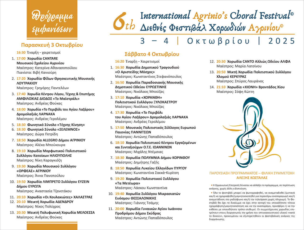 Το 6ο Διεθνές Φεστιβάλ Χορωδιών Αγρινίου έρχεται για δύο ημέρες στις 3 & 4 Οκτωβρίου 2025 – Δημοτικός Κινηματογράφος «ΑΝΕΣΙΣ»