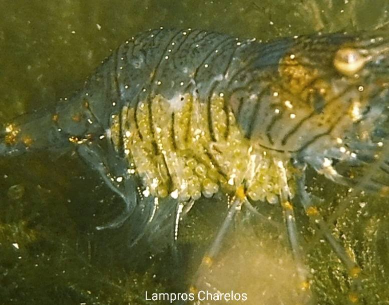 Γαρίδα σε κυοφορία εντοπίστηκε στη λιμνοθάλασσα Αιτωλικού κατά την διάρκεια μιας ακόμη κατάδυσης του δύτη Λάμπρου Χαρέλου.