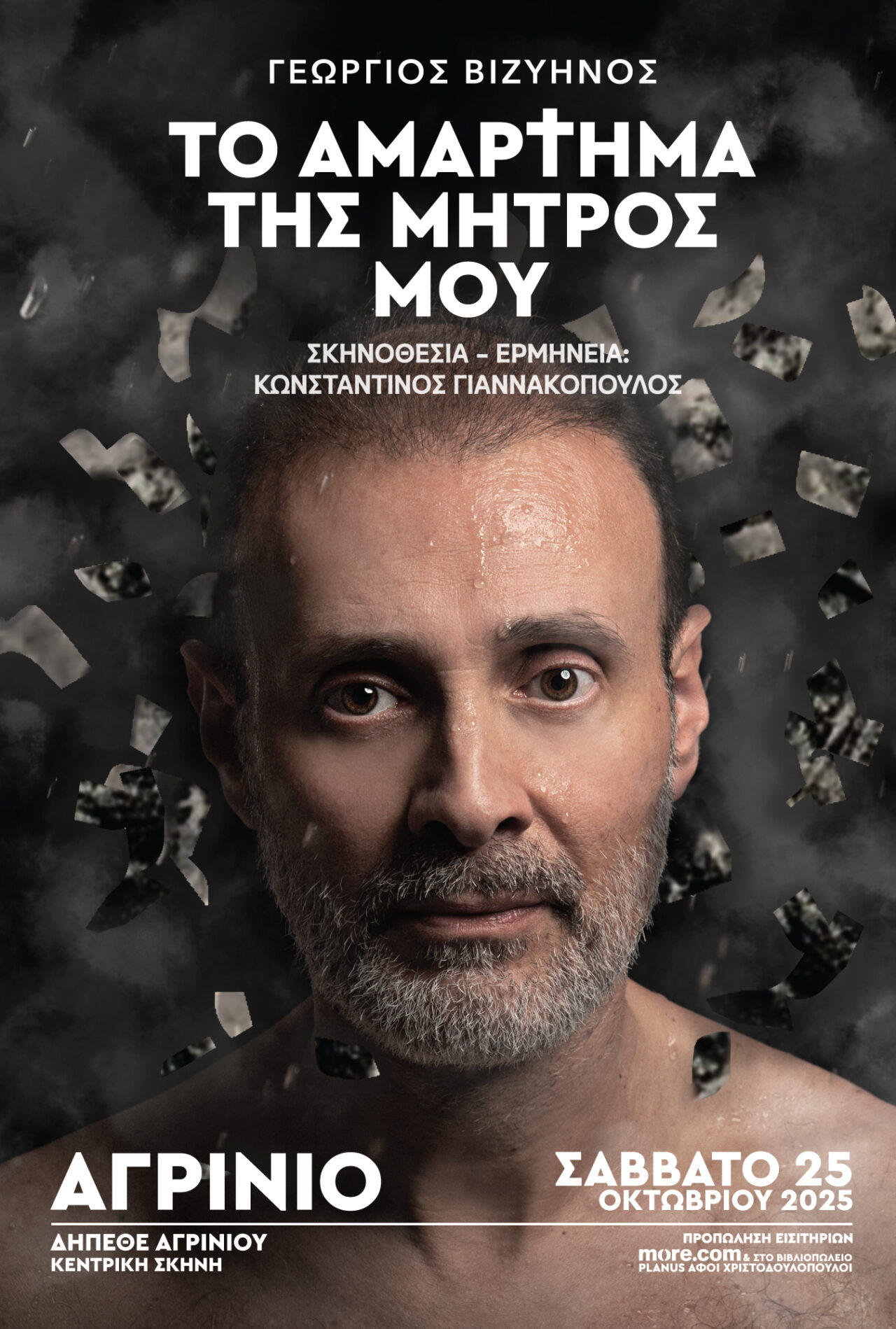 Το ΔΗ.ΠΕ.ΘΕ. Αγρινίου φιλοξενεί το έργο «Το αμάρτημα της μητρός μου» του Γεώργιου Βιζυηνού σε σκηνοθεσία Κωνσταντίνου Γιαννακόπουλου μόνο για μια παράσταση στην αίθουσα του Δημοτικού Θεάτρου, το Σάββατο 25 Οκτωβρίου στις 9 το βράδυ.
