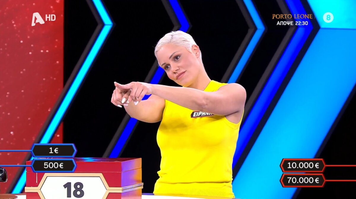 Λίγο πριν το τέλος δε θέλησε να ρισκάρει άλλο και δέχθηκε την προσφορά των 18.000 ευρώ, έπειτα ο Τραπεζίτης ανάμεσα σε δύο μεγάλα ποσά θα της έδινε το δικαίωμα της ανταλλαγής κάτι που έκανε αν και το αποτέλεσμα δε θα μπορούσε να αλλάξει μιας και σταμάτησε.