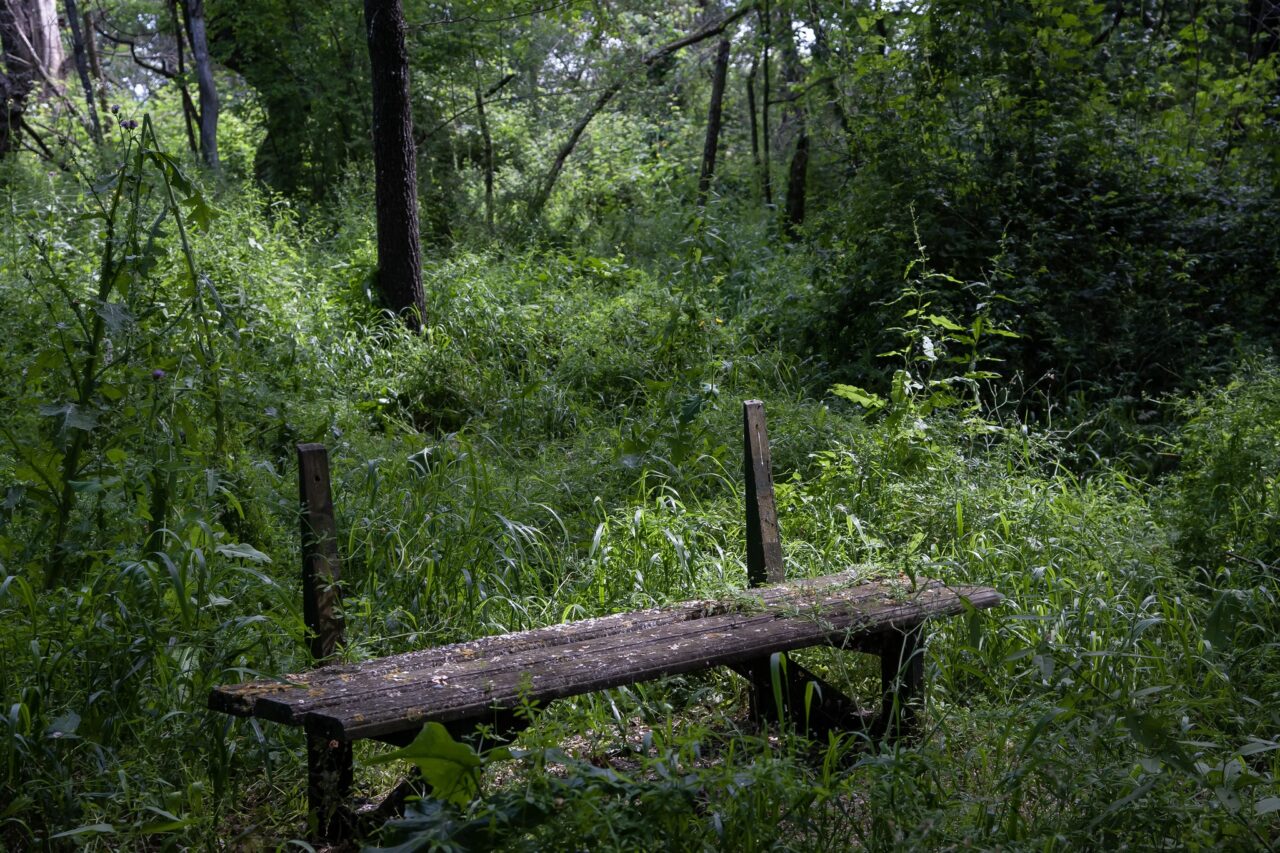 Τα παλιά έργα, παγκάκια κλπ έχουν σαπίσει, ενώ τα αγριόχορτα κοντεύουν να κρύψουν τα δένδρα.