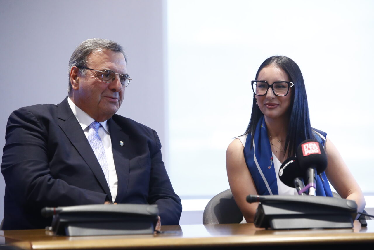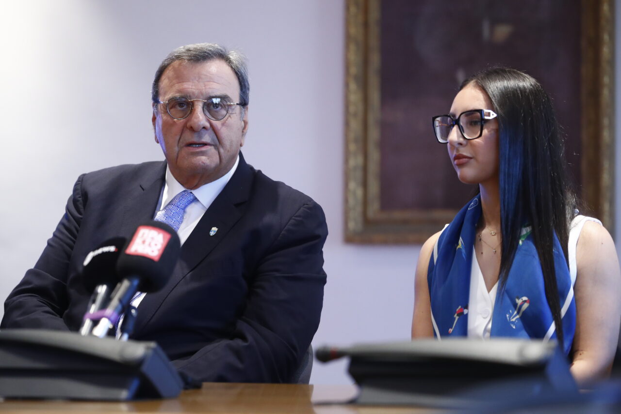 Ο κ. Κούβελος υποδέχθηκε την Κλαυδία στην Ελληνική Ολυμπιακή Επιτροπή και την ευχαρίστησε που αποδέχθηκε την πρόσκληση της ΕΟΕ. «Με χαρά παρουσιάζω σήμερα την αγαπημένη σε όλους τους Έλληνες και ειδικότερα στα νέα παιδιά, Κλαυδία, που τίμησε τη χώρα μας στον τελευταίο διαγωνισμό της Eurovision και βεβαίως θέλω να αναφερθώ στην μεγάλη Τελετή που κάνει η Ελληνική Ολυμπιακή Επιτροπή. Φέτος στις 26 Νοεμβρίου θα γίνει η Αφή της Φλόγας για τους Χειμερινούς Αγώνες Μιλάνο Κορτίνα που είναι τον Φεβρουάριο του 2026 και στις 4 Δεκεμβρίου θα παραδώσουμε τη Φλόγα στους διοργανωτές, τους Ιταλούς.