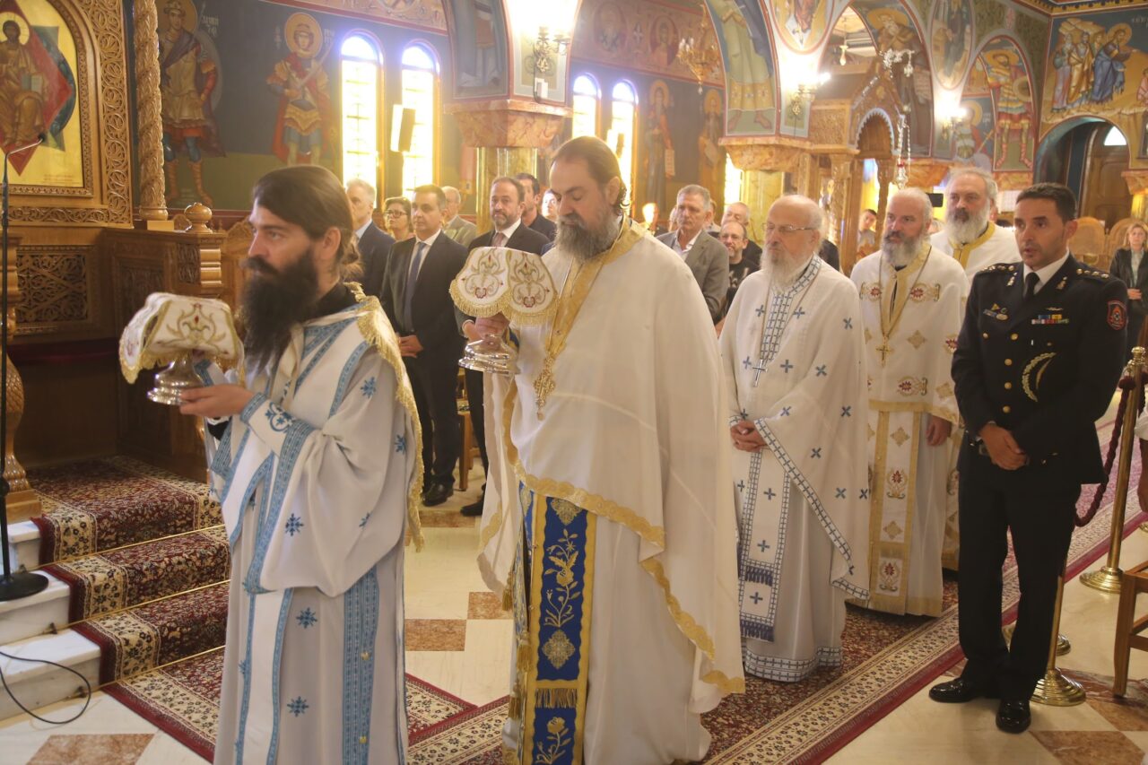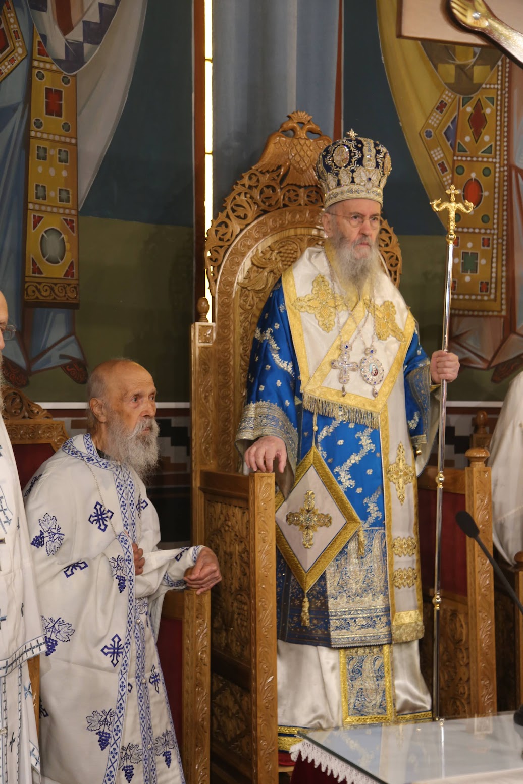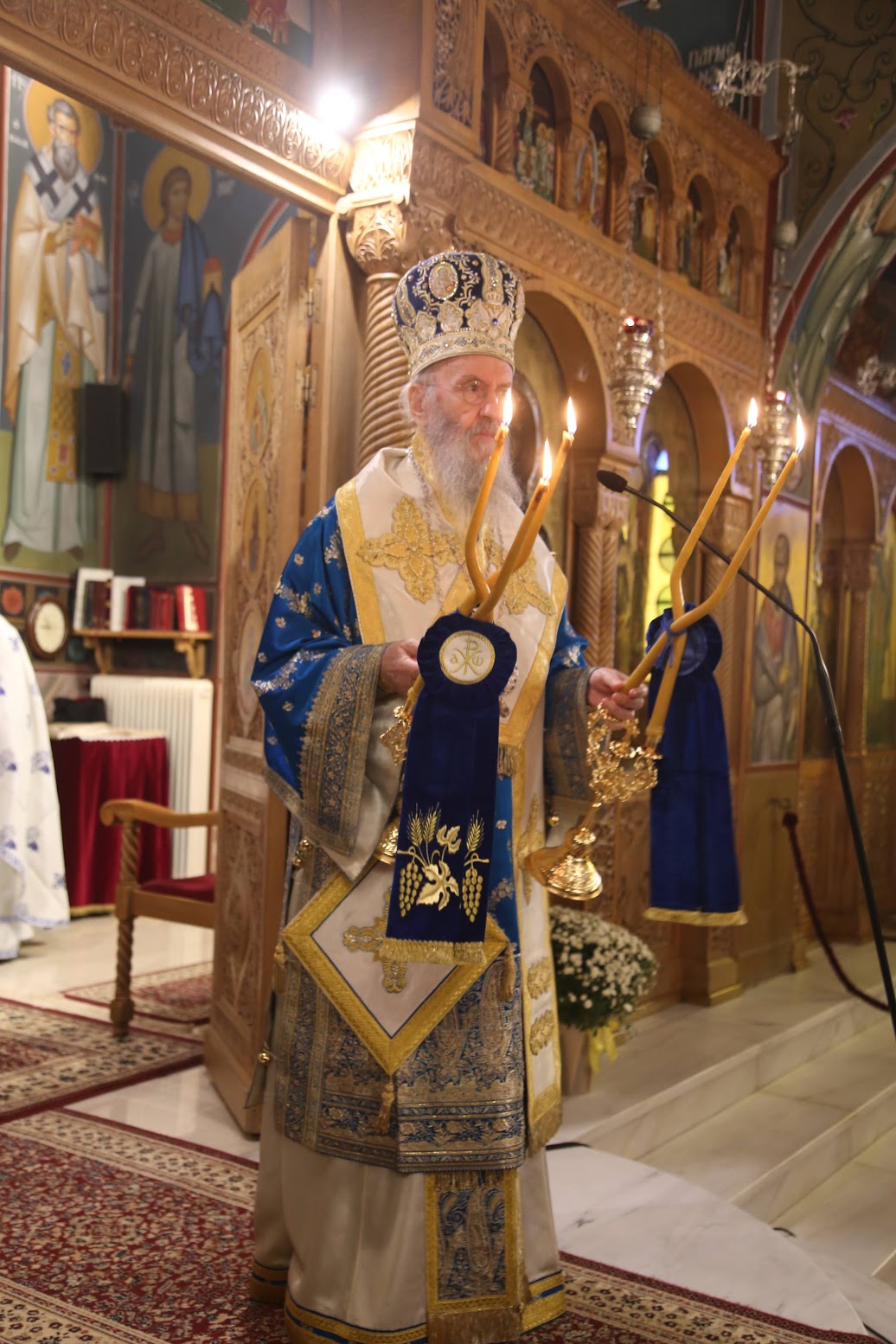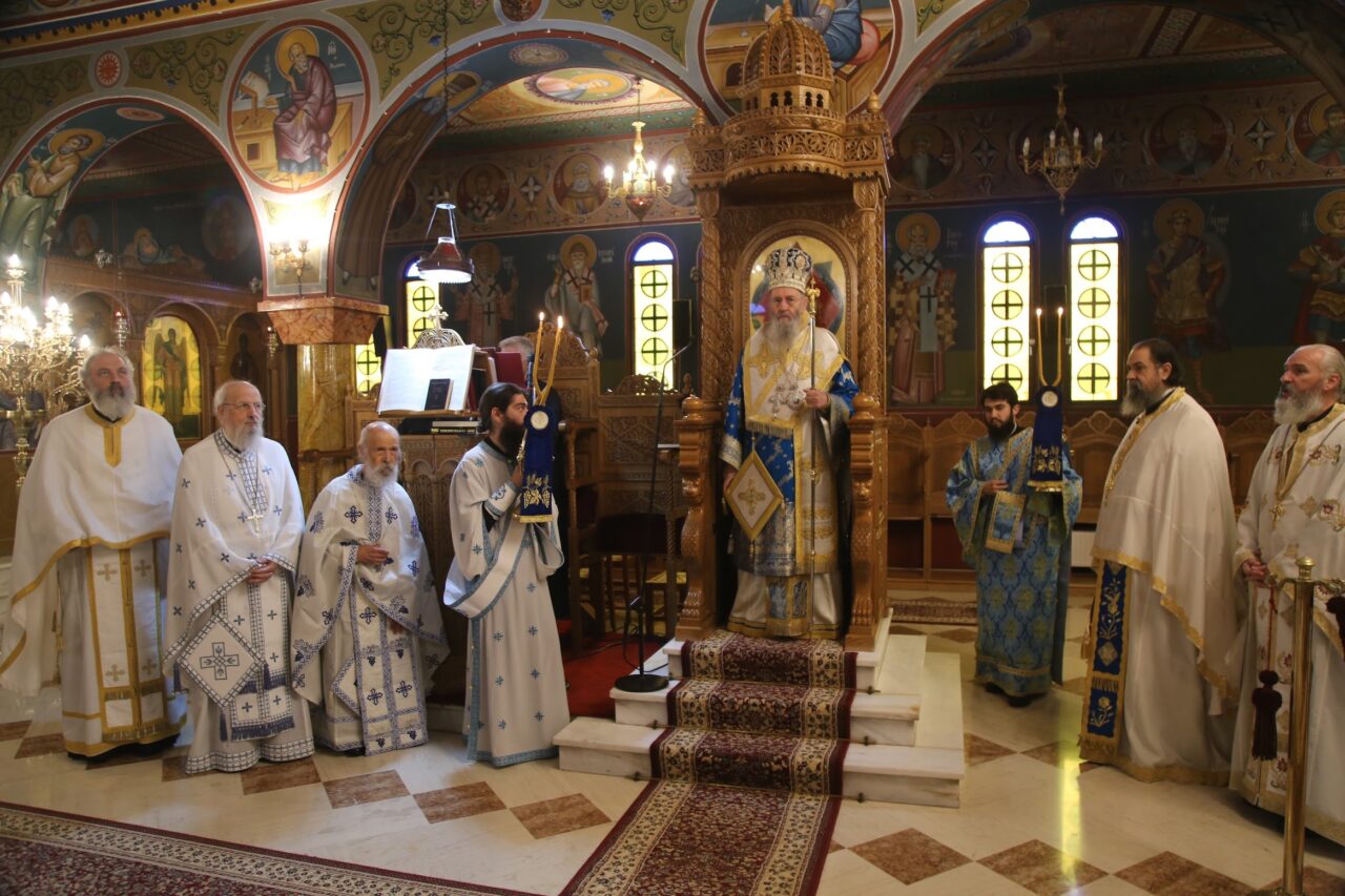 Ο Σεβασμιώτατος συλλειτούργησε με τους ιερείς: αρχιμ. π. Αντώνιο Βαζούρα, αρχιμ. π. Πολύκαρπο Θεοφάνη, π. Θωμά Βαμβίνη, π. Παναγιώτη Χαντζή, π. Θεοφάνη Τσούμο και τους διακόνους π. Παΐσιο Παρασκευά και π. Αντώνιο Αντωνιάδη. Ο Σεβασμιώτατος στο κήρυγμά του αναφέρθηκε στον άγιο Συμεών τον Νέο Θεολόγο, του οποίου η μνήμη εορτάζεται σήμερα. Ο άγιος Συμεών ο Νέος Θεολόγος έζησε στα μέσα του 10ου και στις αρχές του 11ου αιώνα, σε μία περίοδο δύσκολη, καθώς αναπτυσσόταν στη Δύση ο σχολαστικισμός. Ο άγιος Συμεών παρουσίασε την ουσία της Ορθόδοξης Θεολογίας.