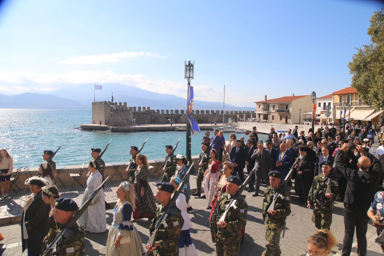 Προ του «Δι’ ευχών» τελέστηκε επίσημη Δοξολογία. Παρόντες ήταν ο βουλευτής Αιτωλοακαρνανίας κ. Θανάσης Παπαθανάσης, ο πρόεδρος του Περιφερειακού Συμβουλίου Δυτικής Ελλάδας κ. Χρήστος Παΐσιος, καθώς και οι τοπικές αρχές με τον δήμαρχο Ναυπακτίας κ. Βασίλειο Γκίζα, τον πρόεδρο του Δημοτικού Συμβουλίου κ. Άγγελο Σταυρόπουλο, αντιδημάρχους, δημοτικούς συμβούλους και εκπροσώπους του Στρατού και των Σωμάτων Ασφαλείας.