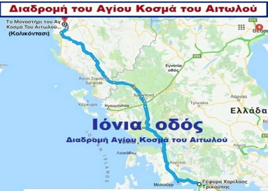 Με τις τέσσερες περιοδείες του Αγίου μας, αναφέρθηκε στην Ημερίδα που έγινε στο Αγρίνιο, Κυριακή 28 Ιανουαρίου 2018, από μέλος του Δ.Σ. του Συνδέσμου Αιτωλοακαρνάνων «ΟΣΙΟΣ ΕΥΓΕΝΙΟΣ Ο ΑΙΤΩΛΟΣ» Τοπογράφο – Πολιτικό Μηχανικό ότι, ο Άγιος μας διάνυσε συνολικά σαράντα χιλιάδες χιλιόμετρα και σίγουρα πέρασε από την Ιόνια Οδό η οποία αρχίζει από το Αντίρριο και φθάνει μέχρι την Ήπειρο.