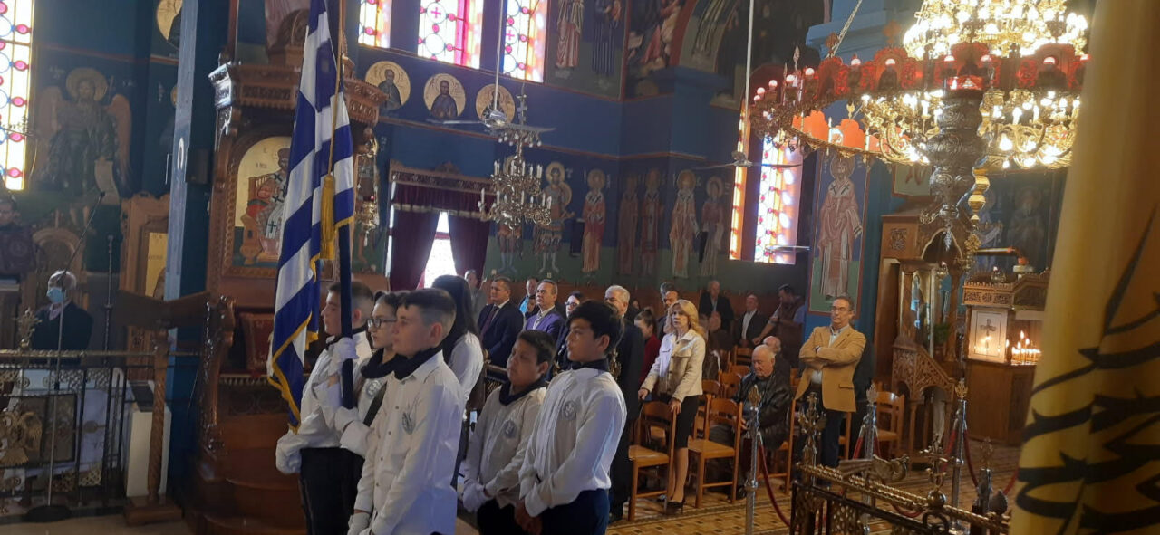 Ανήμερα της Επετείου, τελέσθηκε η θ. Λειτουργία στο Ναό τού Αποστόλου Παύλου καί η Δοξολογία κατά την οποία τον πανηγυρικό της ημέρας εκφώνησε η Δασκάλα του Σχολείου κ. Ιωάννα Παπαϊωάννου.