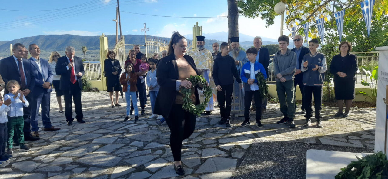 Κατόπιν οι μαθητές του σχολείου με τον Τοπικό Πρόεδρο, τον Διευθυντή του Σχολείου καί τούς λοιπούς δασκάλους επισκέφθηκαν τις προτομές των πιλότων της πολεμικής αεροπορίας Κωνσταντίνου Αλεξανδράκη και Κωνσταντίνου Καραθάνου και εναπόθεσαν δάφνινο στεφάνι.