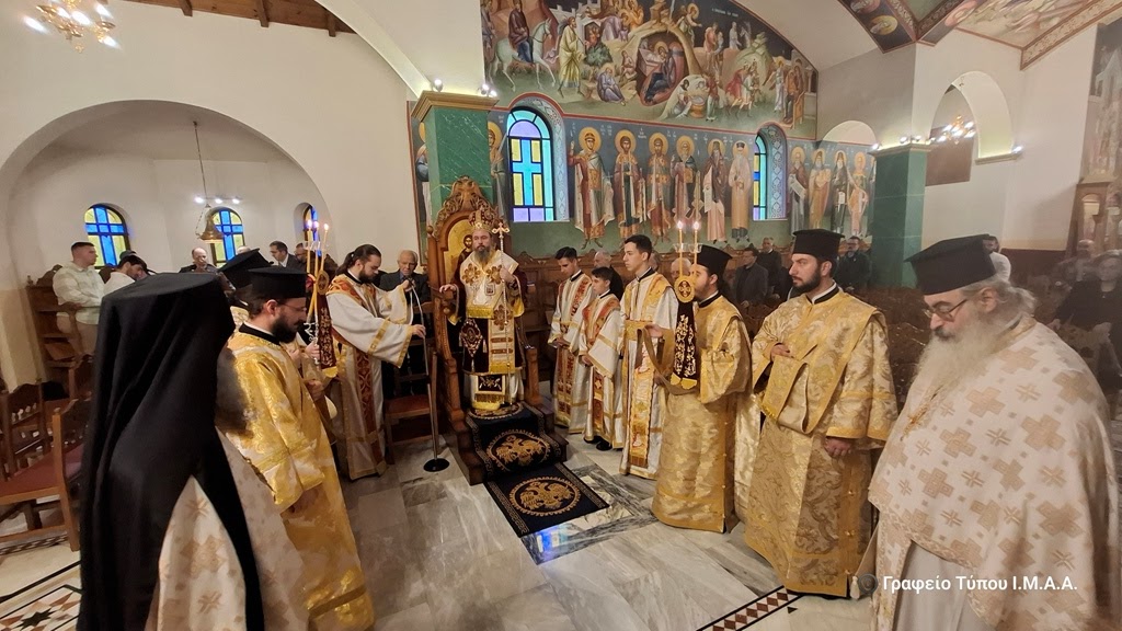 Στο Ιερό Παρεκκλήσιο των Αγίων Αναργύρων της Χριστιανικής Ενώσεως Αγρινίου το πρωί του Σαββάτου, 1 Νοεμβρίου 2025 τελέσθηκε η ακολουθία του Όρθρου χοροστατούντος του Σεβασμιωτάτου Μητροπολίτου Αιτωλίας και Ακαρνανίας κ. Δαμασκηνού, ο οποίος στη συνέχεια προεξήρχε στην πανηγυρική Αρχιερατική Θεία Λειτουργία, με συλλειτουργούς του, τον Ιεροκήρυκα και Πνευματικό Υπεύθυνο της Χριστιανικής Ενώσεως Αγρινίου, Αρχιμ. Λαυρέντιο Καρανάσιο, τον Πρωτοπρ. Βενέδικτο Παπαχρήστο, τον Αρχιδιάκονο της Ι. Μ. Δημητριάδος π. Ιάκωβο Πρώια, τον Αρχιδιάκονο της Ιεράς Μητροπόλεώς μας π. Δημήτριο Λαγούδη και τους Διακόνους π. Ιγνάτιο Γοργολίτσα και π. Σωκράτη Σχίζα.