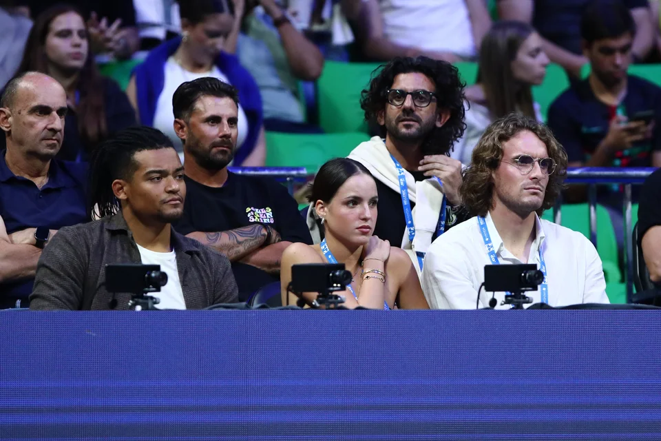 Στο κλειστό βρίσκεται ο Στέφανος Τσιτσιπάς, ο οποίος απέσυρε τη συμμετοχή του από το Hellenic Championship ATP 250 λόγω τραυματισμού. Ο Έλληνας τενίστας, ο οποίος είχε δώσει το «παρών» και στον αγώνα του μικρότερου αδερφού του, Παύλου, παρακολουθεί την προσπάθεια του Σέρβου μαζί με τον Εμμανουήλ Καραλή.
