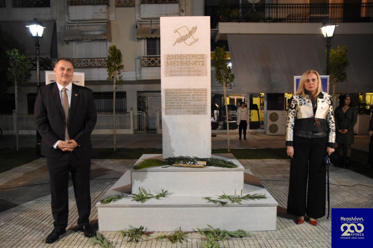 Ο «Ύμνος εις την Ελευθερίαν» αντήχησε ξανά στο Μεσολόγγι, χθες Σάββατο η Ιερή Πόλη τίμησε τον Δημήτριο Μεσθενέα, τυπογράφο των «Ελληνικών Χρονικών» και του «Ύμνου εις την Ελευθερίαν»