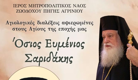 Πηγή: Αγρίνιο: Αγιολογική Διάλεξη για τον Άγιο Ευμένιο Σαριδάκη στον Ιερό Ναό Ζωοδόχου Πηγής