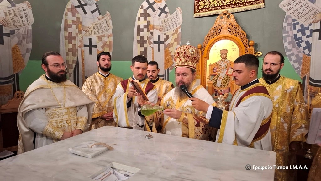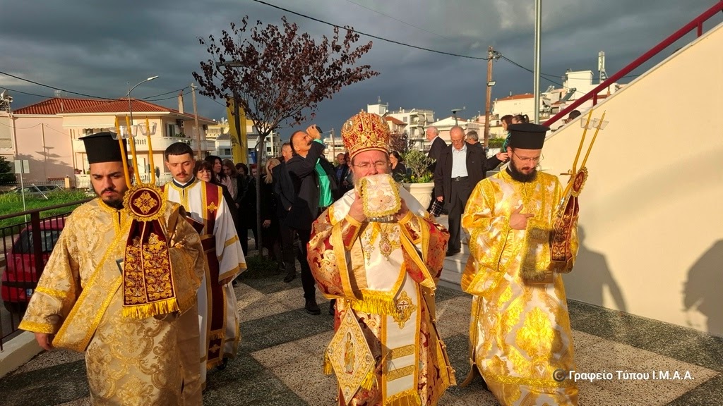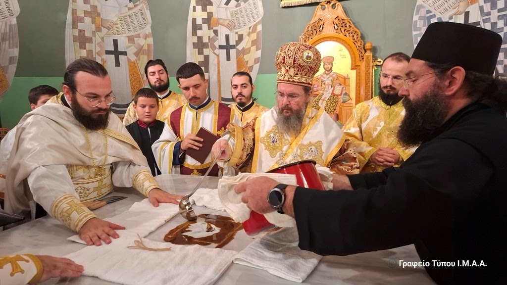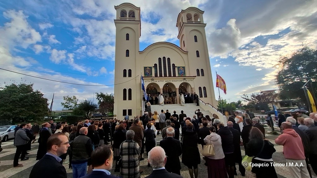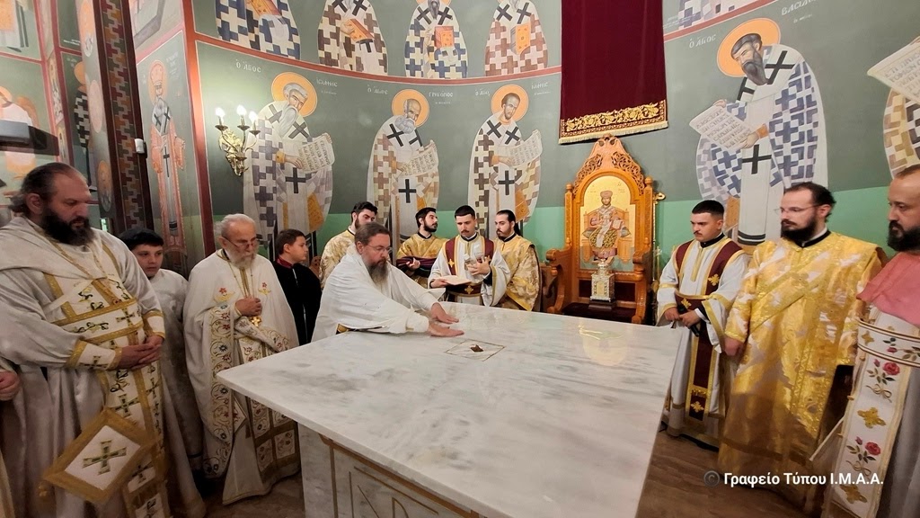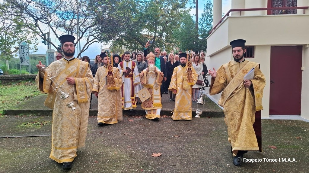 Αγρινίου, το Σάββατο 22 Νοεμβρίου 2025. Το απόγευμα της Παρασκευής, ο Γενικός Αρχιερατικός Επίτροπος, Αρχιμ. Ιωσήφ Ζωγράφος, εκ προσώπου του Σεβασμιώτατου Ποιμενάρχου μας κ. Δαμασκηνού, ο οποίος ευρισκόταν στον Αστακό για τις εκδηλώσεις για τα 200 χρόνια από την Ναυμαχία του Δραγαμέστου, μετέφερε και κατέθεσε επί της Αγίας Τραπέζης τα ιερά μαρτυρικά Λείψανα, κατά την τάξη της Εκκλησίας και κατόπιν προεξήρχε στην Ακολουθία του Εσπερινού των Εγκαινίων, με την συμμετοχή Κληρικών της πόλεως του Αγρινίου.