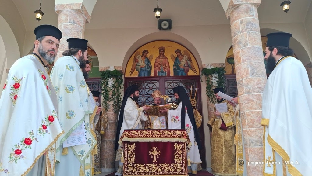 Ο Σεβασμιώτατος απένειμε το οφφίκιο του Πρωτοπρεσβυτέρου στον π. Αναστάσιο Αυγέρη, Εφημέριο του Ιερού Ναού, ευχόμενος να συνεχίσει την διακονία του με σύνεση και υπακοή στην Εκκλησία και στον Επίσκοπό του και να του υπενθυμίζει ο Τίμιος Σταυρός, ότι η ιερατική ζωή είναι κένωση και θυσία υπέρ των αδελφών μας.