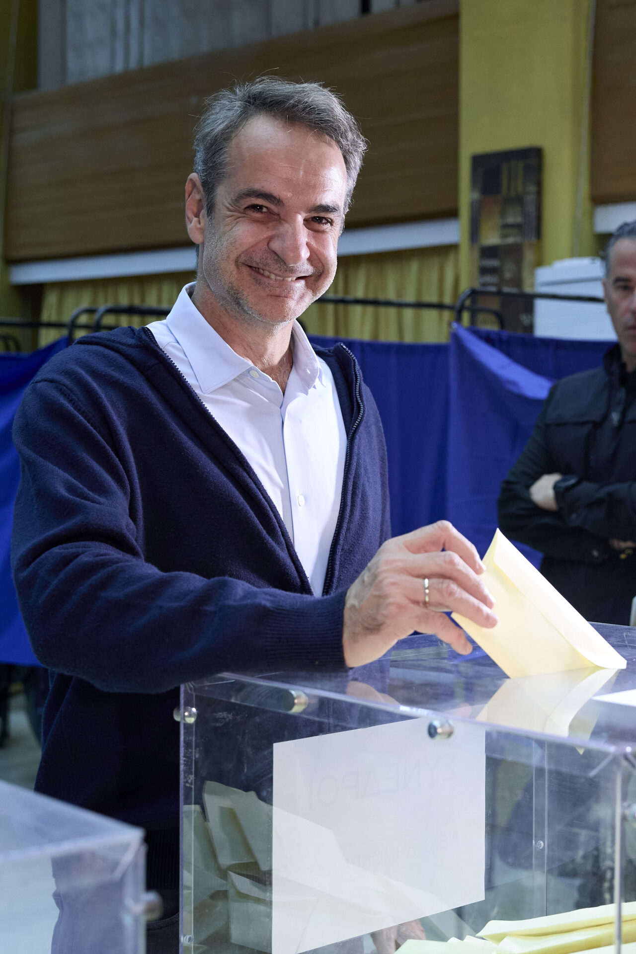 Ικανοποιημένος ο Πρωθυπουργός και Πρόεδρος της Νέας Δημοκρατίας, Κυριάκος Μητσοτάκης, μετά την ψήφο του στις εσωκομματικές εκλογές της ΝΔ, στο Πολιτιστικό Κέντρο Κάτω Πετραλώνων.