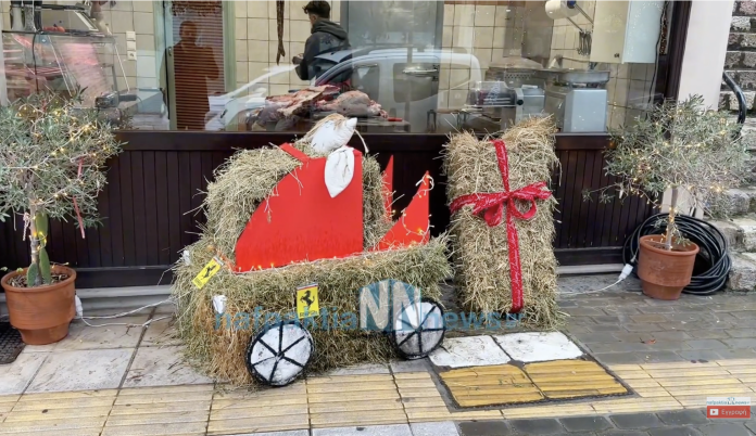 Συγκεκριμένα αυτή τη φορά, ο Κρεοπώλης Λουκάς Πλούμης, έξω από το κατάστημά του στη Ναύπακτο, δημιούργησε μια εντυπωσιακή κατασκευή: μια Φεράρι φτιαγμένη από μπάλα σανό, εμπνευσμένη γύρω από το θέμα του ΟΠΕΚΕΠΕ και όσα απασχολούν την κοινή γνώμη τις τελευταίες ημέρες. Η ευρηματική κατασκευή, που συνδυάζει χιούμορ και κοινωνικό σχόλιο, τραβά τα βλέμματα των περαστικών, δίνοντας παράλληλα έναν εορταστικό και πιο ανάλαφρο τόνο στην κίνηση της αγοράς της Ναυπάκτου, σχολιάζοντας με ευφυΐα την επικαιρότητα.