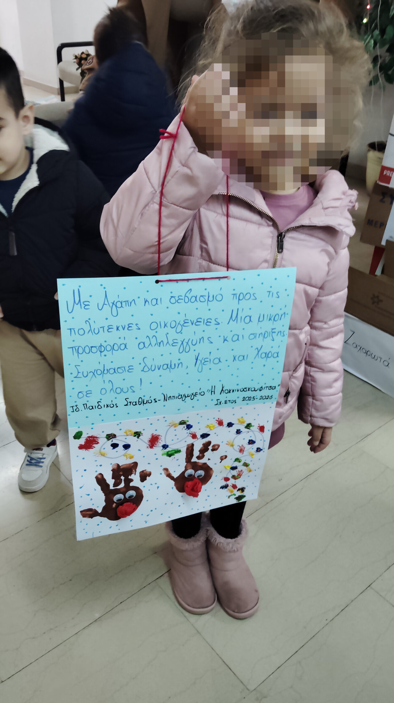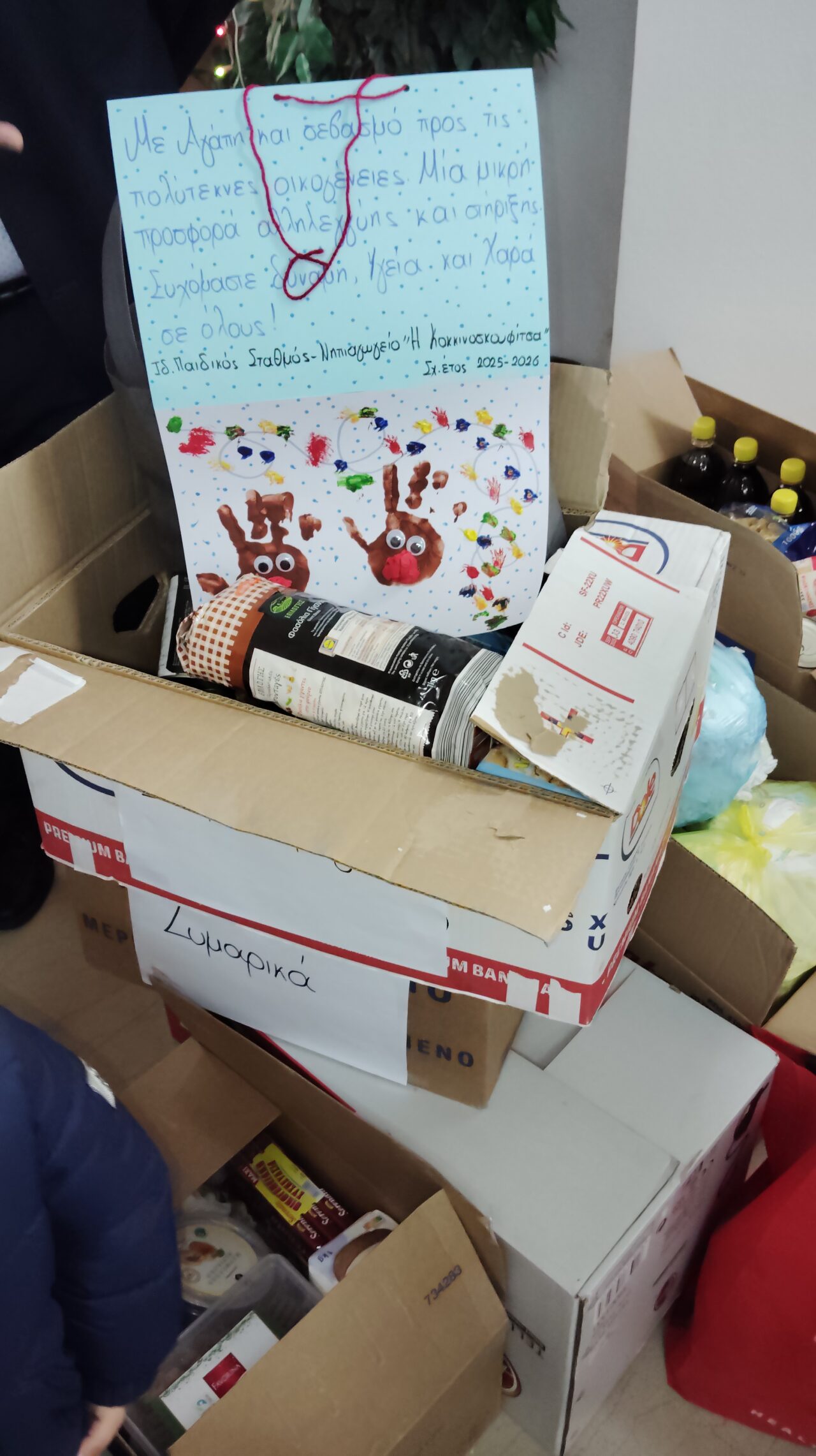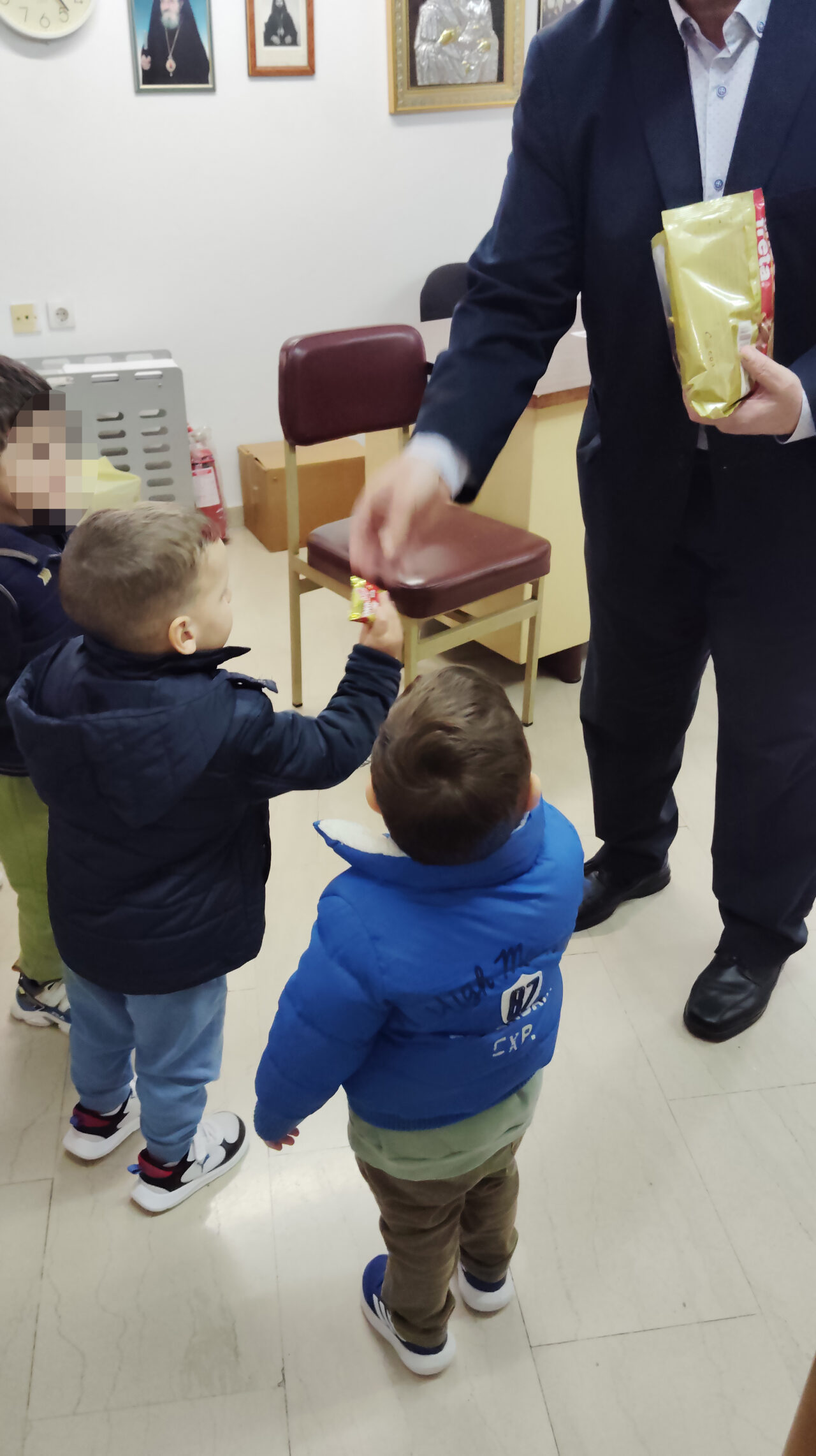 Απρόσμενη και χαρούμενη επίσκεψη πραγματοποίησε αντιπροσωπεία των μεγαλύτερων στην ηλικία, νηπίων του Παιδικού Σταθμού και του Νηπιαγωγείου << Η ΚΟΚΚΙΝΟΣΚΟΥΦΙΤΣΑ>>, με επικεφαλής την Διευθύντρια, κ. Μαργαρίτα Λαινά και τη συνοδό νηπιαγωγό, κ. Αντιγόνη Καπέρδα, μεταφέροντας σημαντικό αριθμό κιβωτίων με τρόφιμα, ως αποτέλεσμα της συνδρομής των μητέρων και της διεύθυνσης του Παιδικού Σταθμού, προς διανομή από το Σύλλογο σε πολύτεκνες οικογένειες, οι οποίες έχουν άκρως ιδιαίτερη ανάγκη ,ενόψει μάλιστα και της Μεγάλης Εορτής των Χριστουγέννων και του Νέου ΄Ετους.