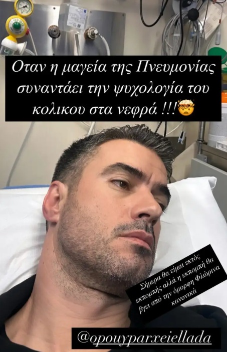 Ο γνωστός ηθοποιός και παρουσιαστής ανέφερε πως ταλαιπωρείται από πνευμονία και κολικό στα νεφρά, κάτι που έχει ως αποτέλεσμα να απουσιάζει σήμερα από την εκπομπή «Όπου υπάρχει Ελλάδα».