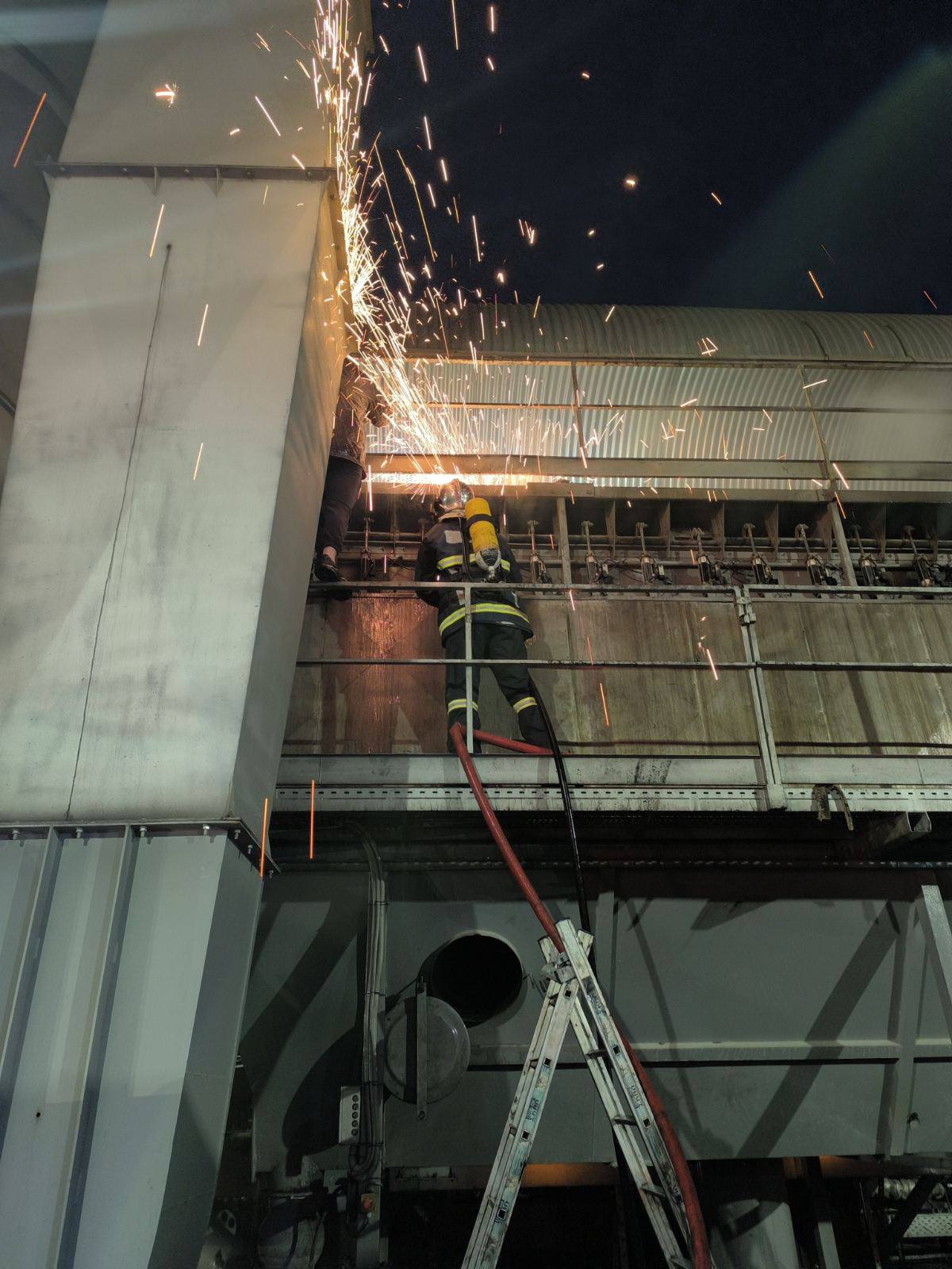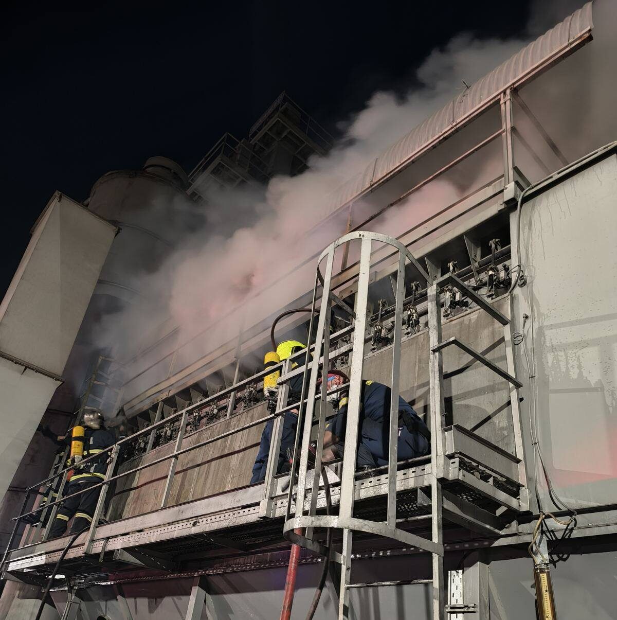 Η φωτιά σύμφωνα με τις πρώτες ανεπιβεβαίωτες πληροφορίες εκδηλώθηκε σε τμήμα παρασκευής ασφαλτομείγματος.