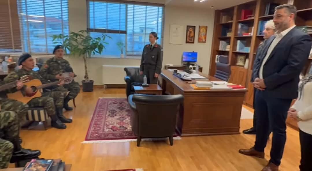 Τα χριστουγεννιάτικα κάλαντα άκουσε ο Αντιπεριφερειάρχης Αιτωλοακαρνανίας, Θανάσης Μαυρομμάτης από τους στρατιώτες του 2/39 Συντάγματος Ευζώνων και τη Φιλαρμονική του Δήμου Μεσολογγίου.