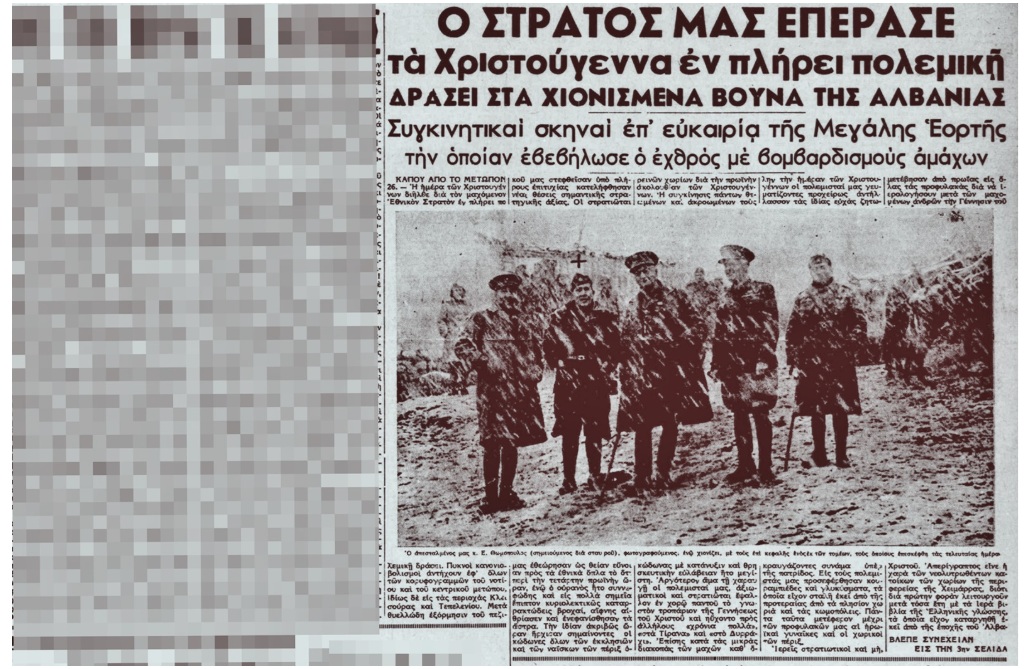 Οι ελληνικές εφημερίδες καυτηριάζουν ως «νέο έγκλημα» τους βομβαρδισμούς την ημέρα των Χριστουγέννων, σημειώνοντας ότι «όλοι οι άλλοι εμπόλεμοι εσεβάσθησαν την μεγάλην ημέραν του Χριστιανισμού. Ούτε οι Άγγλοι αεροπόροι επέδραμον κατά της Γερμανίας, ούτε οι Γερμανοί κατά της Αγγλίας».