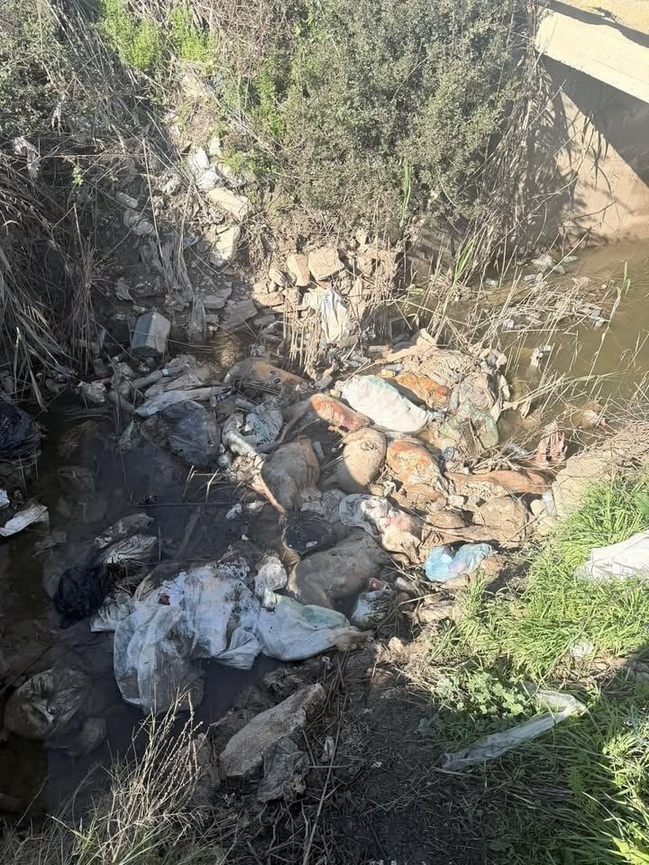 Νεκρά πρόβατα στον αύλακα αποστράγγισης που περνάει και από το δάσος του Φράξου στην περιοχή του Λεσινίου. Μιλάμε για έναν ακόμη αύλακα που συνδέεται με τους υπόλοιπους και στο τέλος καταλήγει στην διώρυγα που μεταφέρει τα νερά στην θαλάσσια περιοχή Βαλτί. Δηλαδή μιλάμε για μια καταστροφή καθώς το νερό της αποστράγγισης χρησιμοποιείται και για άρδευση μικρών καλλιεργειών που χρειάζονται συχνό πότισμα και έτσι αντλείται νερό με μικρές αντλίες από τον αύλακα. Επίσης πολλοί κτηνοτρόφοι αντλούν νερό για να ποτίσουν τα ζώα τους. Αρκετοί αγρότες παίρνουν νερό από τον αύλακα για το ράντισμα των δέντρων.