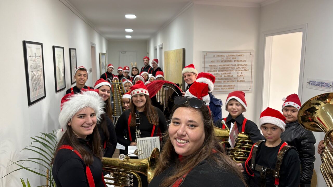 Οι μικροί μουσικοί, υπό τη διεύθυνση του Αρχιμουσικού τους κ. Δημήτρη Μανωλάτου, επισκέφθηκαν το γραφείο του Δημάρχου, όπου παρουσίασαν τα παραδοσιακά πρωτοχρονιάτικα κάλαντα και αντάλλαξαν ευχές για το νέο έτος.