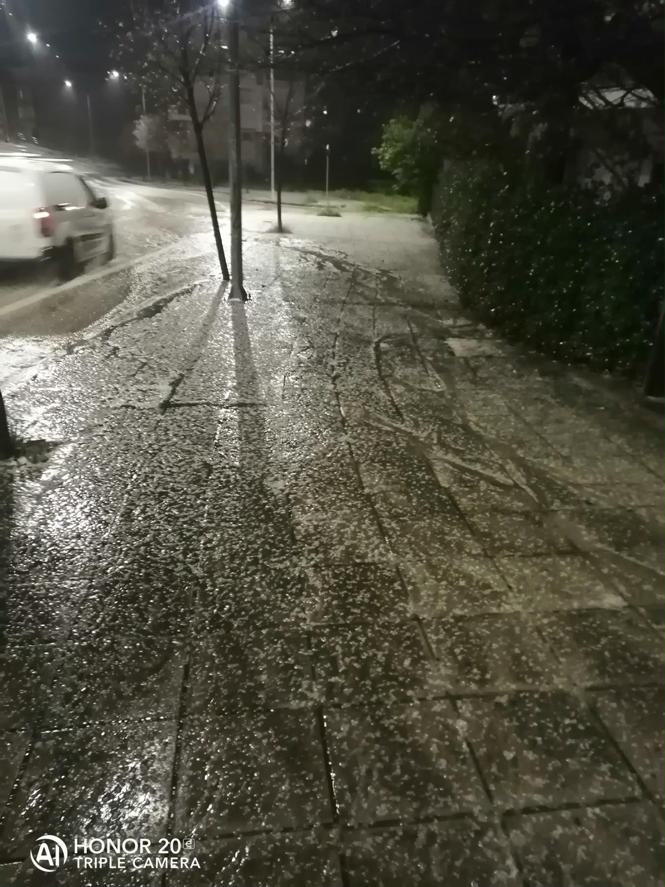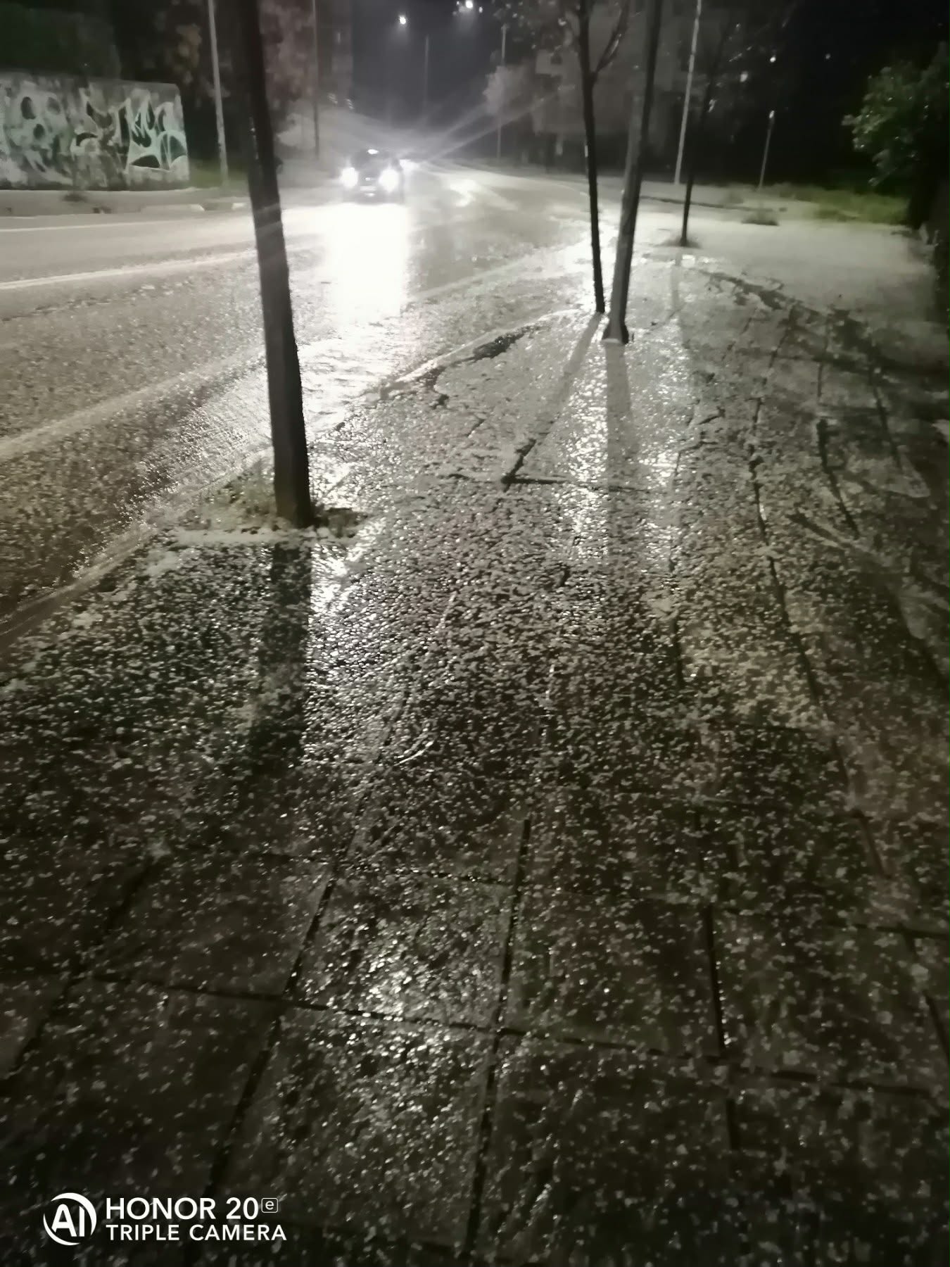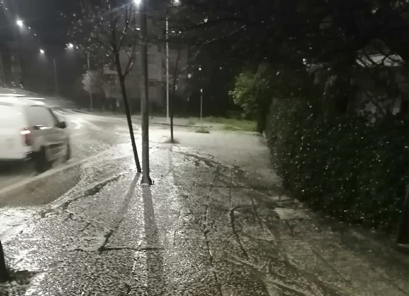 Ο δρόμος της περιμετρικής στο παλιό νοσοκομείο “στρώθηκε” από χαλάζι ενώ ο ουρανός άστραφτε από κεραυνούς