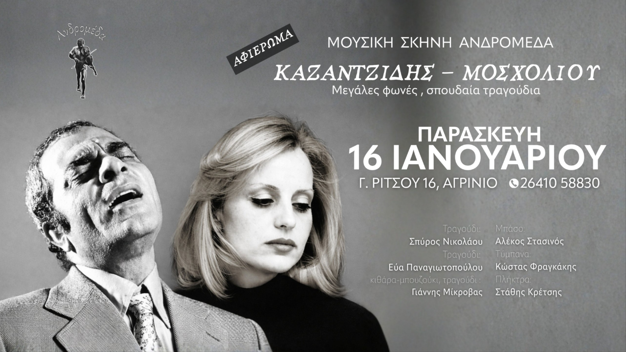 Πηγή: Αγρίνιο: Αφιέρωμα στον Στέλιο Καζαντζίδη και την Βικυ Μοσχολιού στην μουσική σκηνή “Ανδρομέδα”
