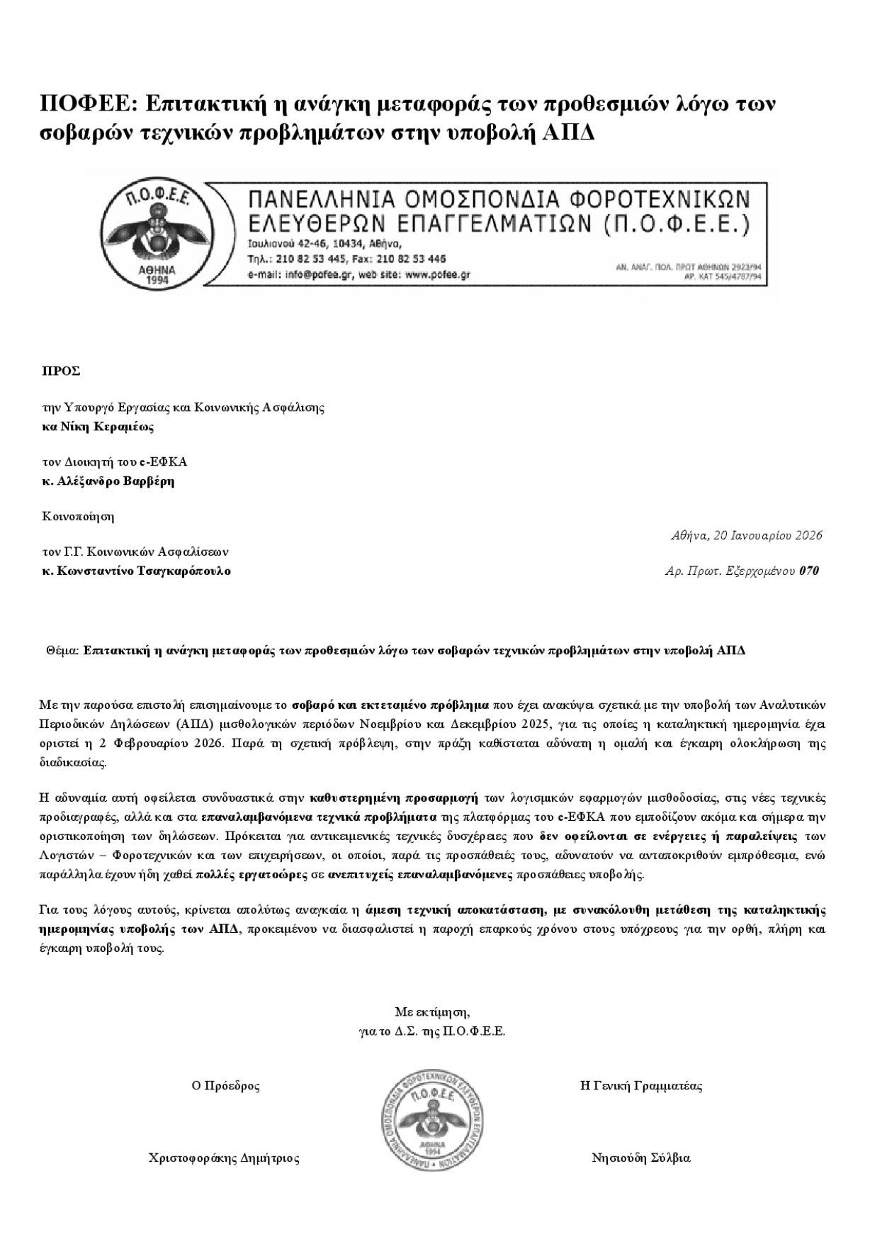 Πηγή: Σοβαρά τεχνικά προβλήματα με την πλατφόρμα του e-ΕΦΚΑ για τις Α.Π.Δ.