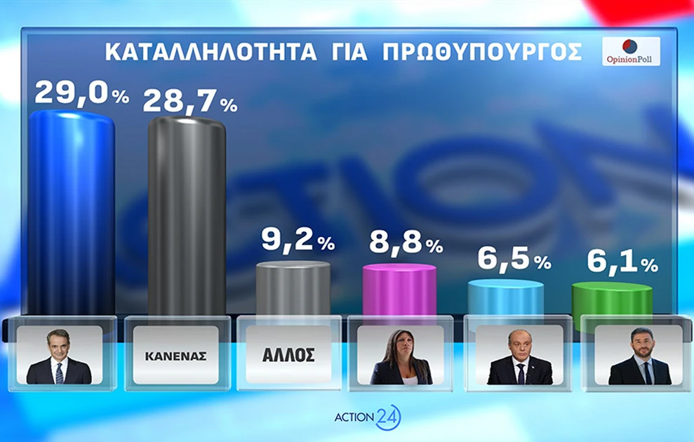Πηγή: Δημοσκόπηση Opinion Poll: Πρώτη η ΝΔ, δεύτερο το ΠΑΣΟΚ – Τι καταγράφει για Καρυστιανού και Τσίπρα