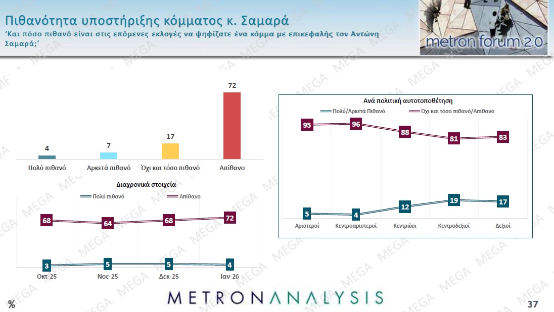 Στην πρώτη περίπτωση 72% απαντά ότι είναι απίθανο να το ψήφιζε ενώ στην δεύτερη περίπτωση αυτό το ποσοστό καταγράφεται στο 66%.