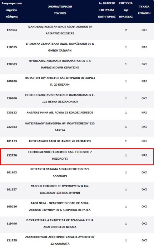 Το ένα από τα 15 συνολικά τυχερά δελτία παίχτηκε σε Πρακτορείο Allwyn στο Μεσολόγγι και μάλιστα με τυχαία επιλογή, ο τυχερός ή η τυχερή πλήρωσε μόλις 1 ευρώ και θα εισπράττει κάθε μήνα 1.000 ευρώ για τους επόμενους 12 μήνες.