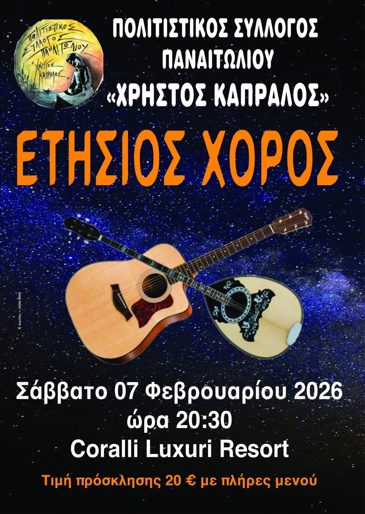 Ο Πολιτιστικός Σύλλογος Παναιτωλίου «Χρήστος Καπράλος» διοργανώνει τον Ετήσιο Χορό του, το Σάββατο 7 Φεβρουαρίου 2026, στις 20.30 μ.μ στο Corali Luxury Resort.