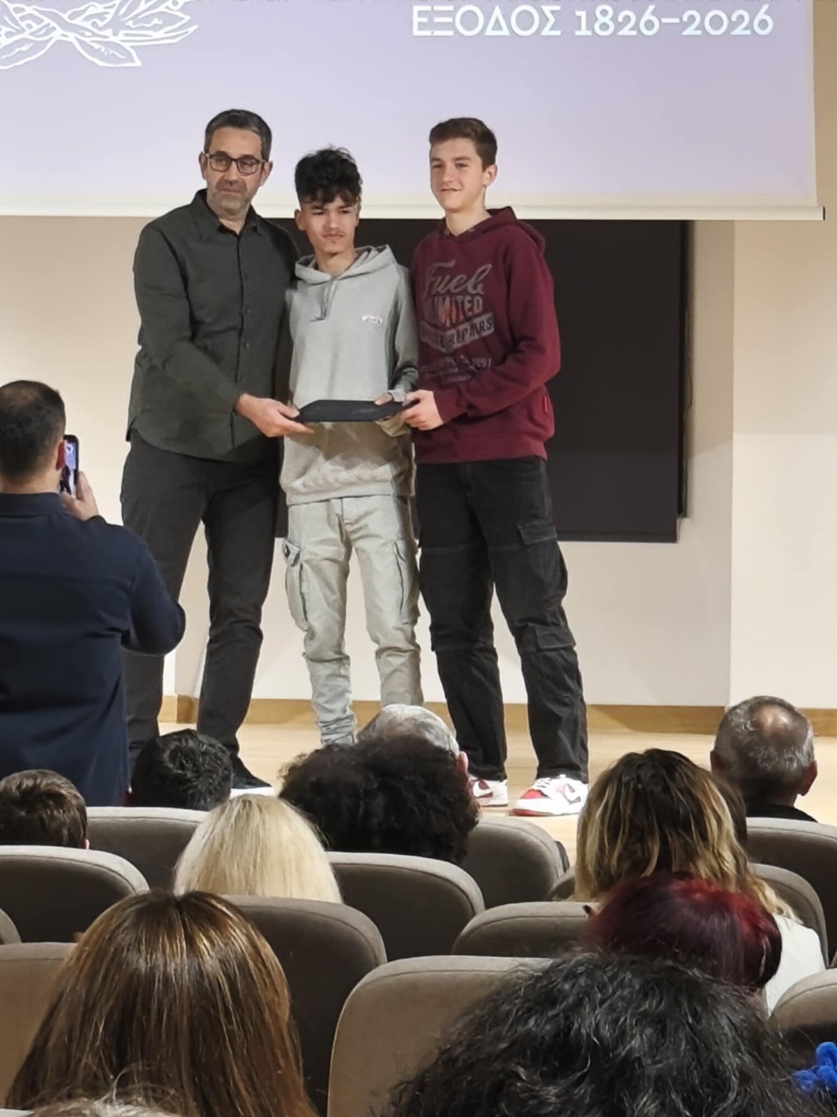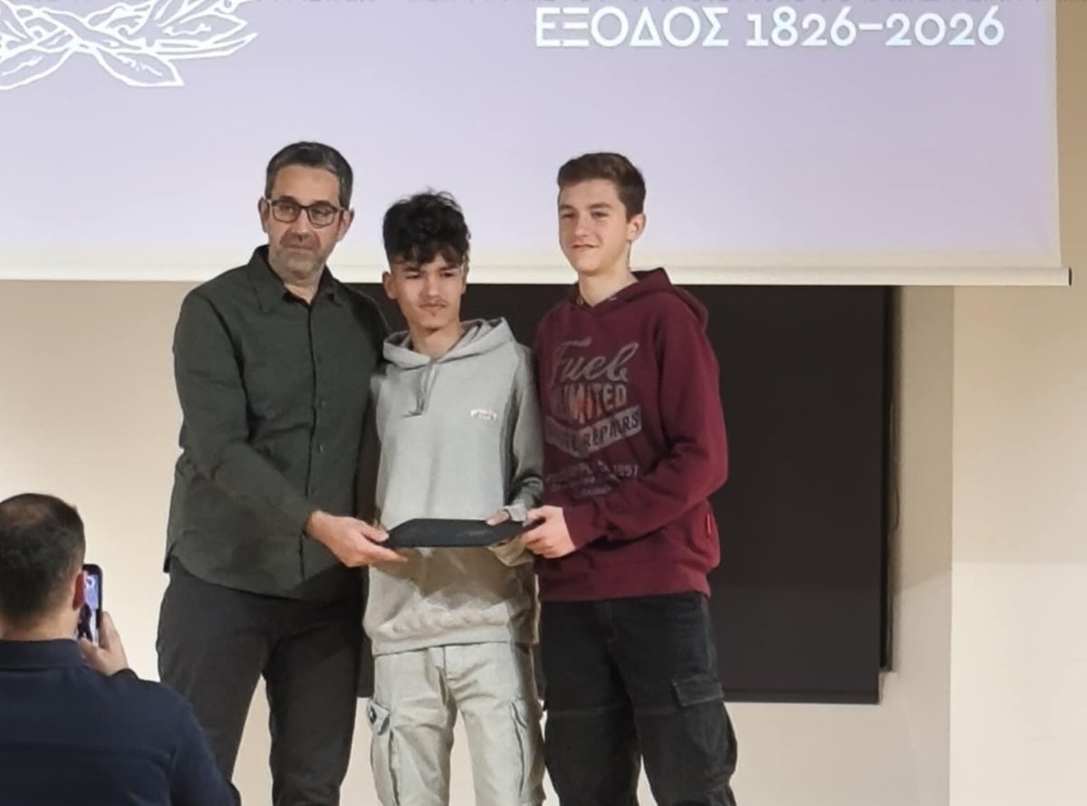 Η προσπάθεια και η ενεργή συμμετοχή των δύο μαθητών τιμήθηκαν με βράβευση στο πλαίσιο της Εκδήλωσης Βραβεύσεων και Τιμητικών Διακρίσεων του Εικαστικού και Λογοτεχνικού Διαγωνισμού της Διακοσιοστής Επετείου της Εξόδου, που διοργάνωσε ο Δήμος Ιεράς Πόλεως Μεσολογγίου.