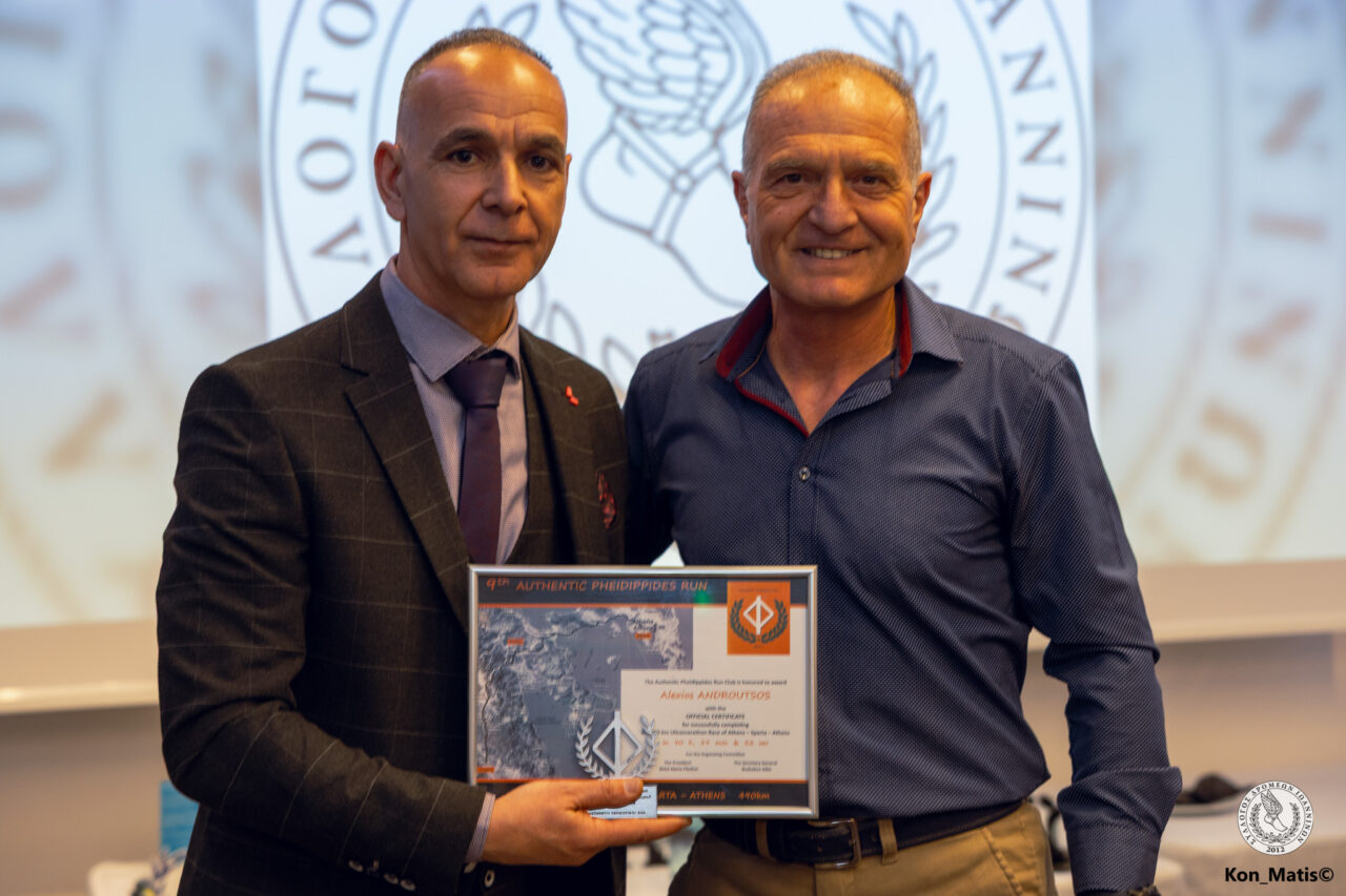 Αλέξης Ανδρούτσος, για την εξαιρετική του προσπάθεια και τον επιτυχή τερματισμό του στον 9ο Αυθεντικό Φειδιππίδειο Δρόμο 2025 (Αθήνα–Σπάρτη–Αθήνα, 490 ΧΛΜ με επίδοση: 90 ώρες & 39 λεπτά )
