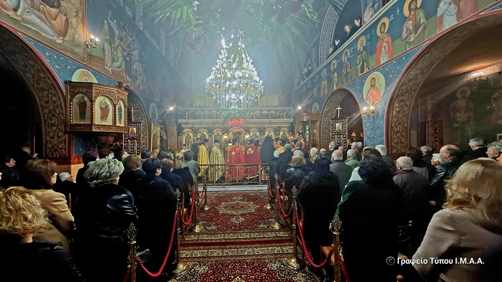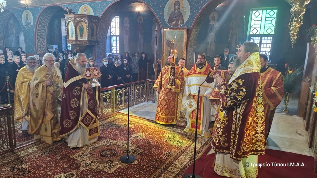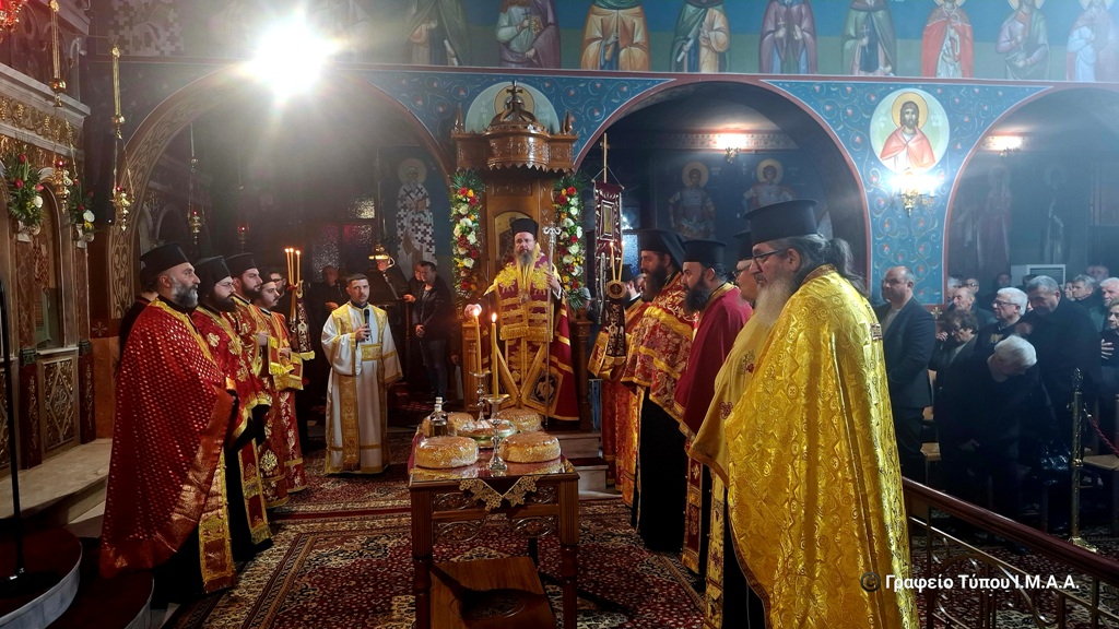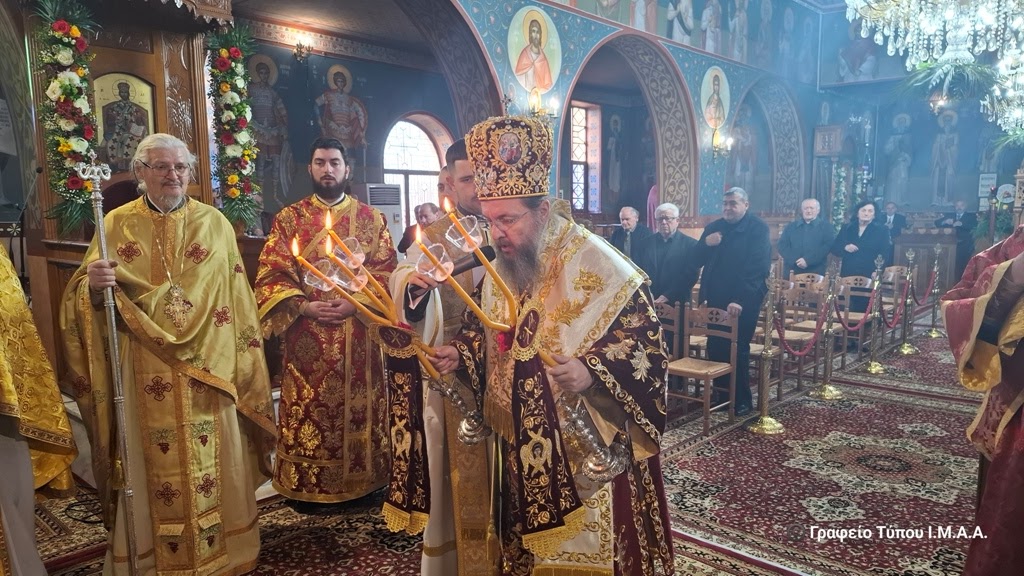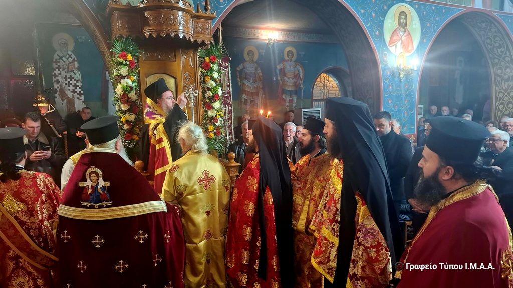 Το απόγευμα της Δευτέρας 9 Φεβρουαρίου τελέσθηκε η ακολουθία του πανηγυρικού Αρχιερατικού Εσπερινού, χοροστατούντος του Σεβασμιωτάτου Μητροπολίτου Αιτωλίας και Ακαρνανίας κ. Δαμασκηνού, με την συμμετοχή πολλών κληρικών της Ιεράς Μητροπόλεως.