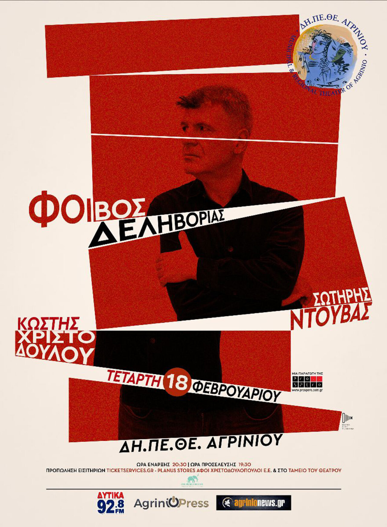 Το ΔΗ.ΠΕ.ΘΕ. Αγρινίου, στο πλαίσιο της θεματικής ενότητας «Επτά Μουσικές Τετάρτες», θα φιλοξενήσει τον Φοίβο Δεληβοριά στην Κεντρική Σκηνή του.